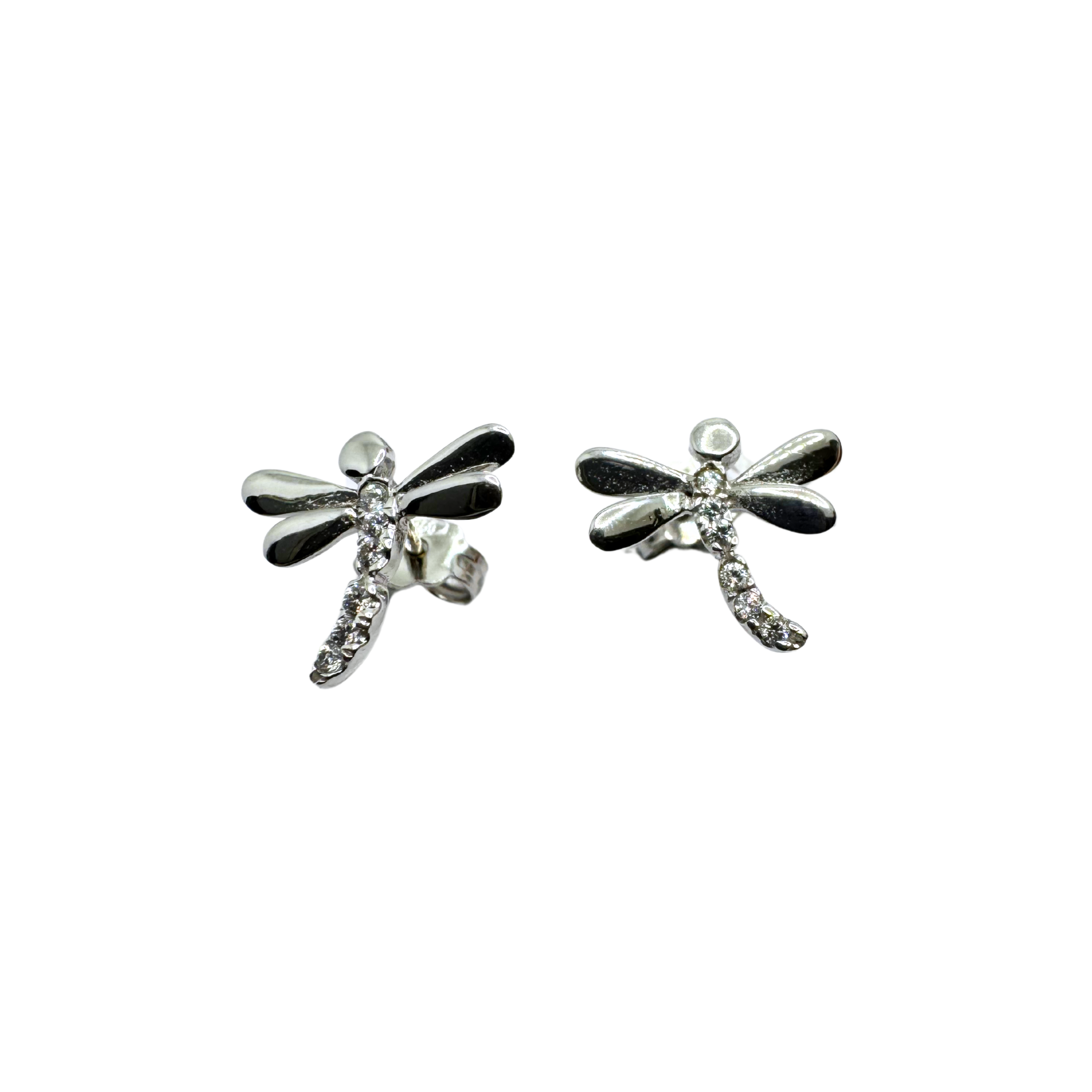 Pendientes de libélula en oro blanco de 18 kt con circonitas