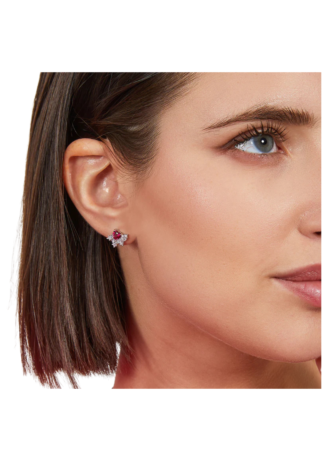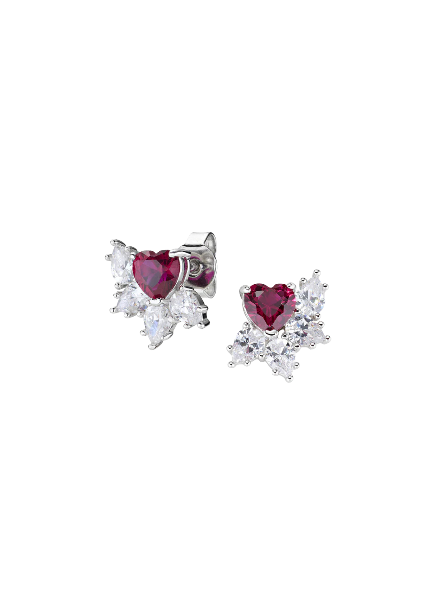 Pendientes de plata de ley 925 con circonitas rojas y blancas talla corazón - Rodio - 9 mm
