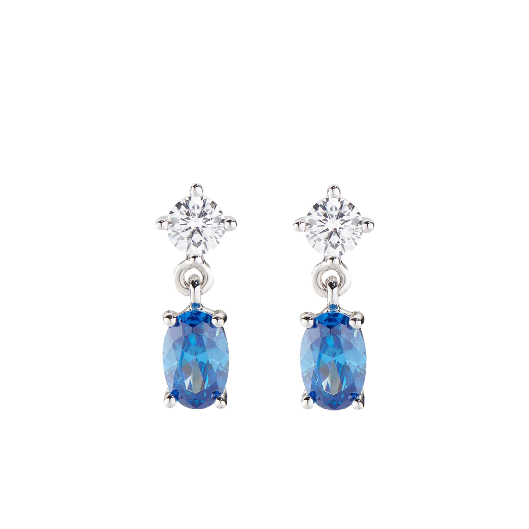 Pendientes AG925 con circonitas blancas y azules - Rodio - Largo 1cm