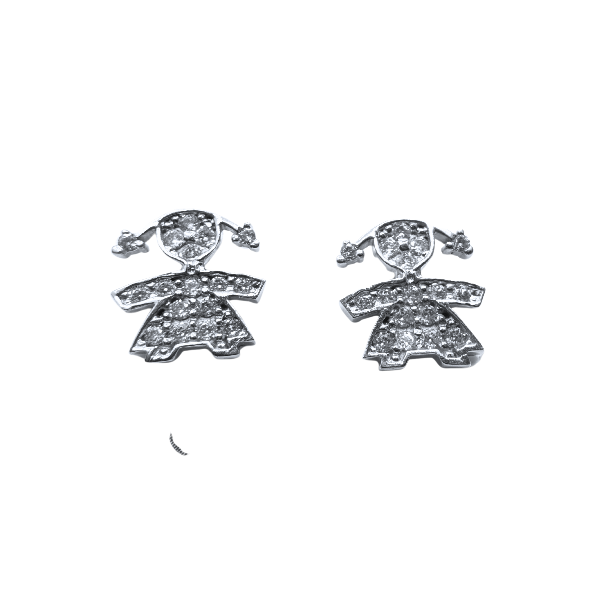 Pendientes de niña en oro blanco de 18 kt con circonitas