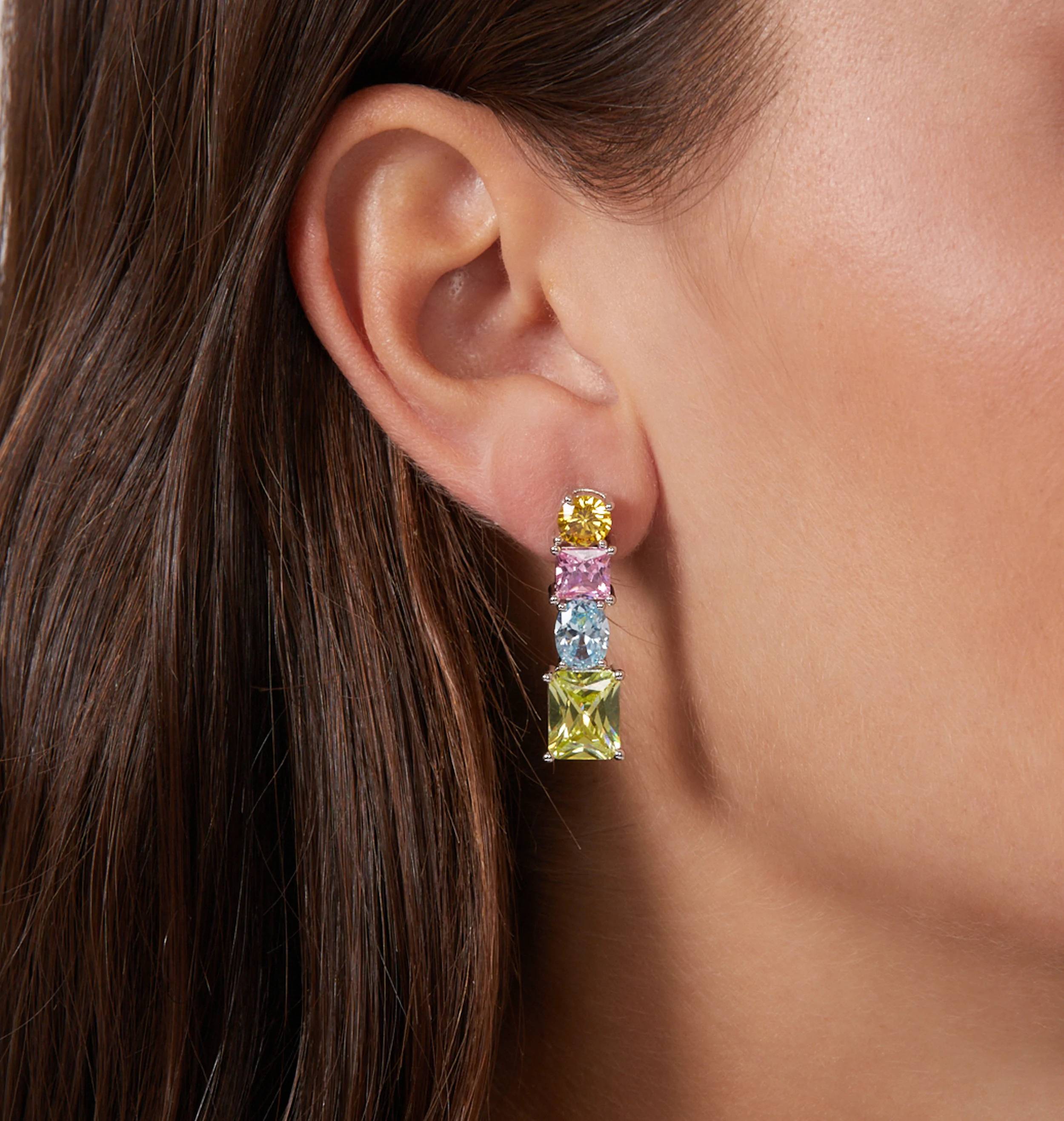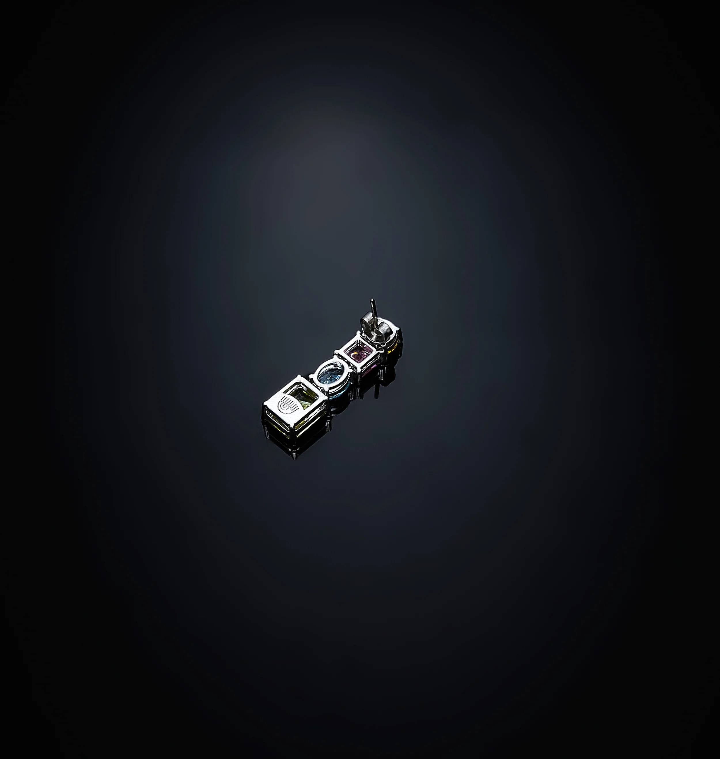 Pendientes para mujer, colección Arcoíris de Chiara Ferragni. Pendientes largos rodiados con circonitas multicolores en tonos azules, amarillos, rosas y verdes. Las piedras están disponibles en diferentes tallas: redonda, cuadrada, ovalada y esmeralda. Dimensiones: 28 mm. Descubre la nueva y actualizada colección Ferragni; son un imprescindible de esta temporada.