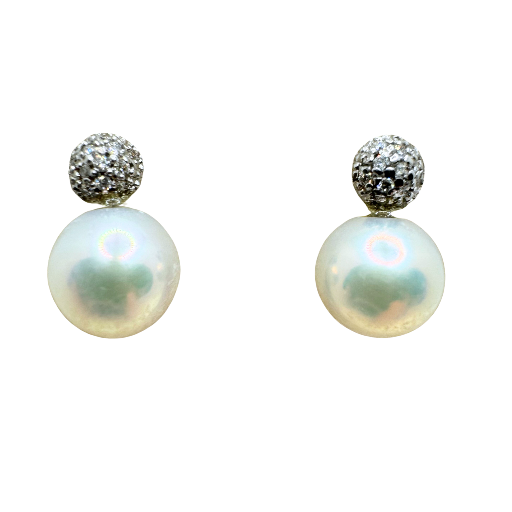 Pendientes Iannelli hechos a mano con perlas de agua dulce de 8/8,5 mm y diamantes