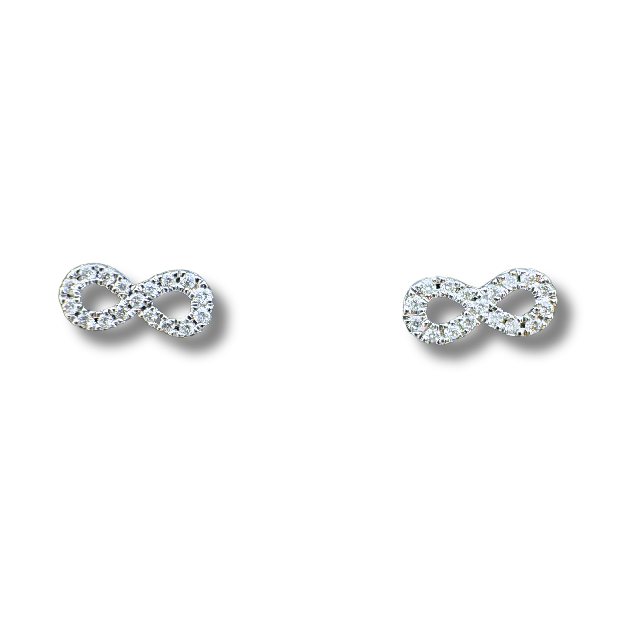 Pendientes Iannelli hechos a mano con el símbolo del infinito en oro y diamantes.