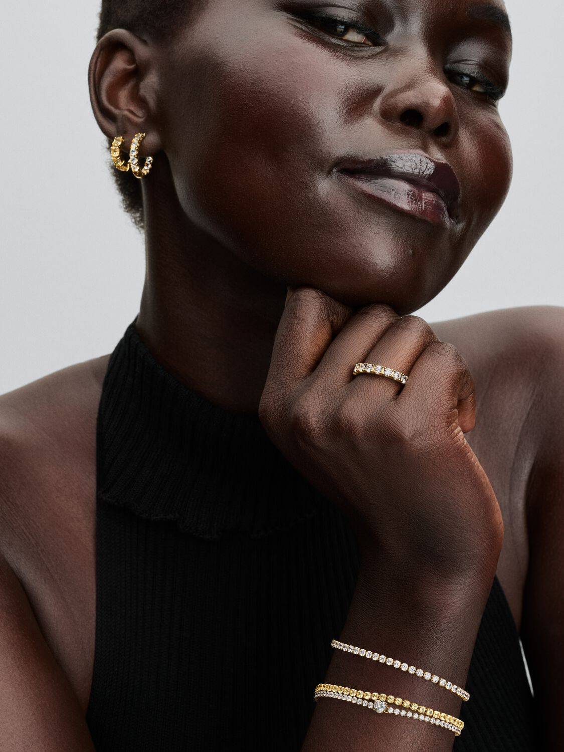 Añade un toque de brillo a tu look con estos pendientes de aro, que cuentan con una hilera de circonitas cúbicas de color amarillo brillante.