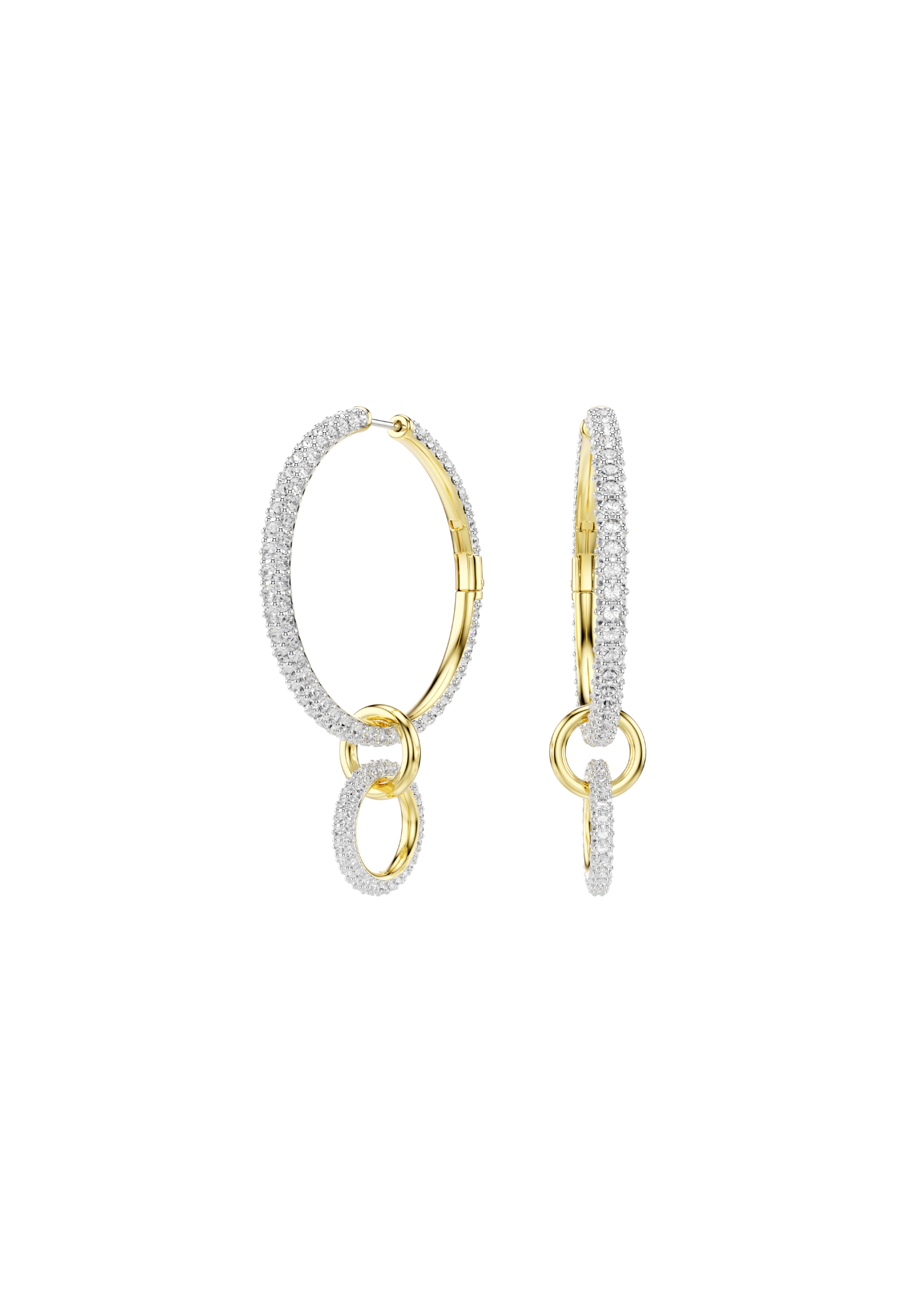 Conferisci ai tuoi look di tutti i giorni una sferzata di brillantezza con i sofisticati orecchini a cerchio. Realizzato con tre anelli interconnessi, ciascun orecchino è placcato in tonalità oro e impreziosito da radiosi cristalli Cry. Per un’opzione di stile versatile, la sezione pendente può essere facilmente rimossa, consentendoti di cambiare il loro aspetto con facilità.