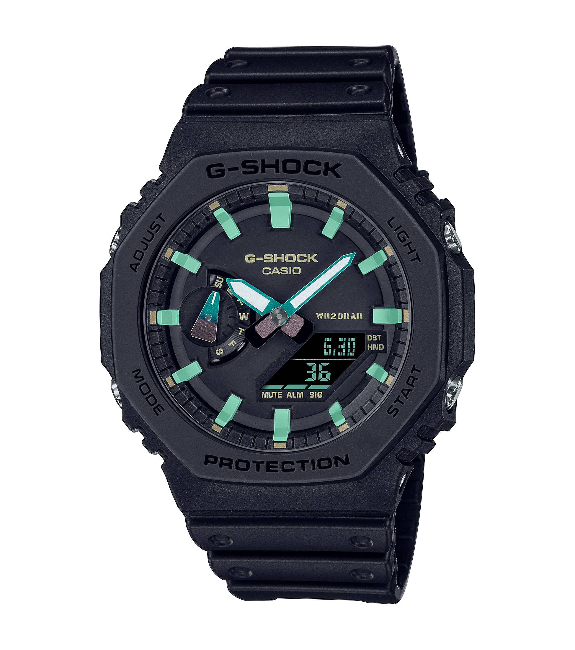 Reloj Casio G-Shock negro con marcadores y manecillas verdes