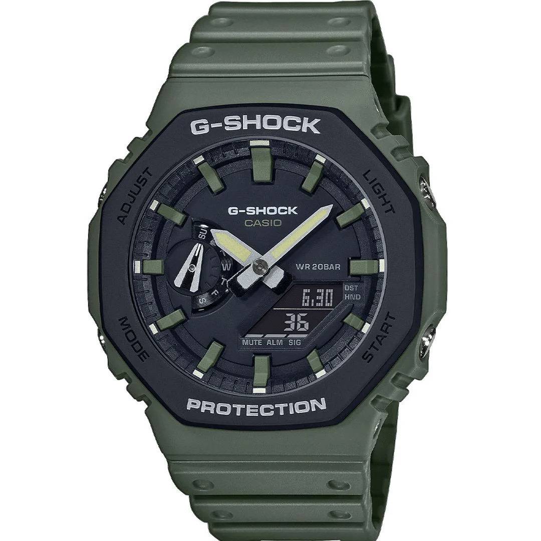 G-SHOCK, la marca de relojes indestructibles, presenta un práctico modelo a color basado en la estilizada combinación analógico-digital del GA-2100. El diseño presenta un estilo casual de inspiración urbana y combina a la perfección con diversos atuendos y situaciones. Un bisel con revestimiento de doble contorno realza aún más el diseño.