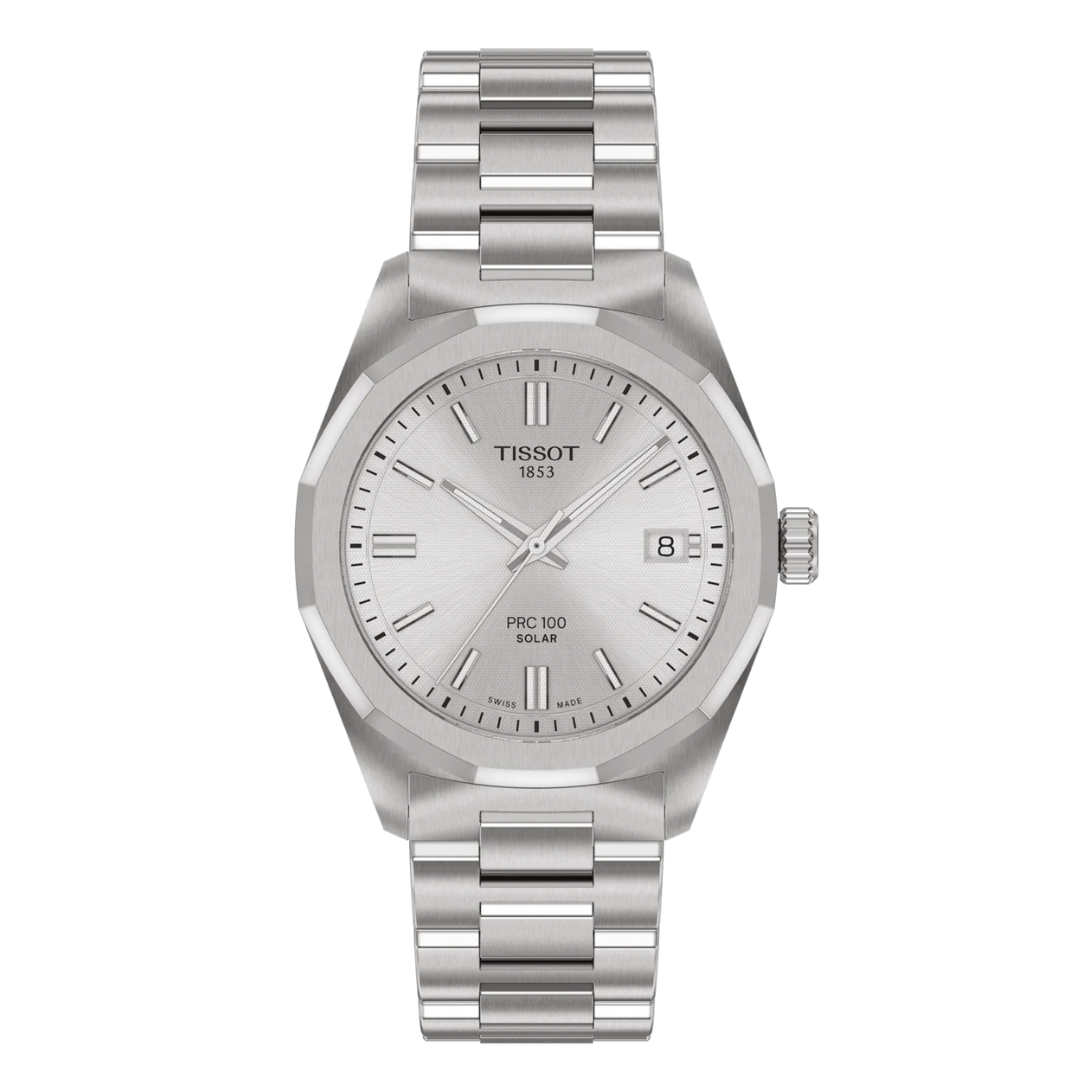 Presentado por primera vez a mediados de la década de 2000, el PRC 100 se consolidó rápidamente en la colección Tissot gracias a su impactante diseño. Ahora regresa con un innovador movimiento de cuarzo solar Lightmaster, que aprovecha la energía fotovoltaica para alimentar cada segundo. Con su caja de acero de 34 mm y bisel dodecagonal, este modelo irradia confianza. Bajo el elegante cristal de zafiro se esconde un movimiento de cuarzo solar, diseñado para recargarse fácilmente con luz natural y artificial. Un indicador de bajo consumo garantiza un rendimiento óptimo, mientras que la compatibilidad con una correa de 18 mm permite personalizar su estilo con opciones tanto clásicas de cuero como modernas.