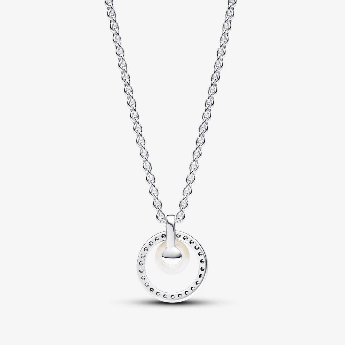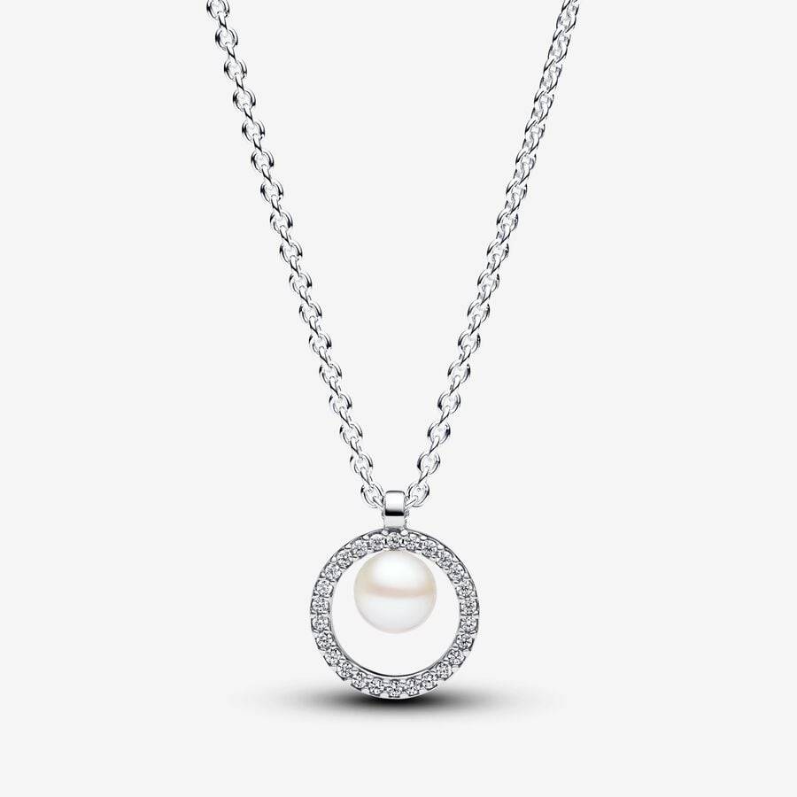 Dale un toque de brillo a tu look con el nuevo collar de perlas cultivadas de agua dulce con pavé. Elaborado en plata de ley 925, el collar cuenta con una cadena de 45 cm, ajustable a 42 cm y 38 cm, adornada con una perla cultivada de agua dulce rodeada de deslumbrantes circonitas cúbicas incoloras en un círculo. La cadena pasa por un pasador pulido en la parte superior del círculo, lo que permite que el colgante se deslice libremente. La elegancia atemporal de la perla hace que este collar sea perfecto para ocasiones especiales o para añadir un toque sofisticado a tus looks de diario. Nota: Cada perla cultivada de agua dulce tratada es única y puede variar en tamaño y color; este material puede sufrir desgaste normal. Nuestras perlas cultivadas de agua dulce reciben un tratamiento de decoloración y realce de brillo.