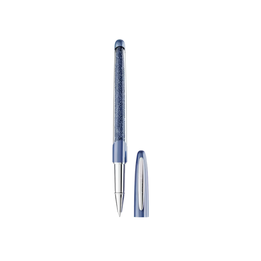 Mucho más que un simple instrumento de escritura, este bolígrafo Crystalline Nova está adornado con aproximadamente 400 cristales azules gracias a la exclusiva técnica Crystalline. Un clip plateado complementa el cuerpo y el capuchón de color azul denim brillante. Este bolígrafo, finamente elaborado, es una idea de regalo única. Recambios de tinta negra y azul disponibles en las tiendas Swarovski.