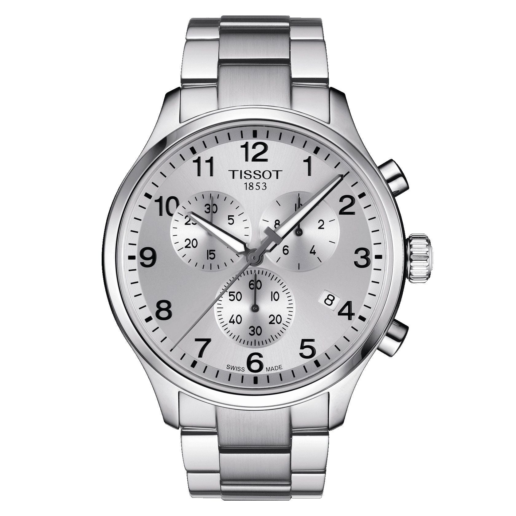 Reloj Tissot Chrono XL Classic plateado con correa de acero y números arábigos