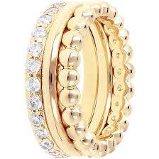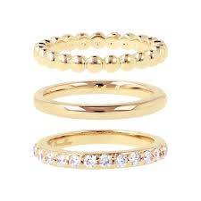 Conjunto de anillos Bronzallure para mujer de la colección Golden, elaborados en aleación Golden Rosé y bañados en oro amarillo de 18 kt. El conjunto incluye un anillo de eternidad con circonitas cúbicas, un anillo de banda lisa y un anillo de banda con cuentas.