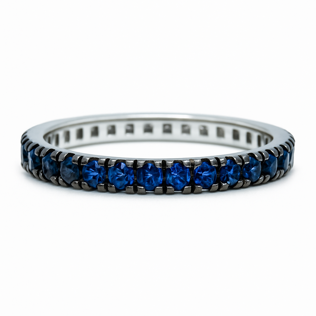 Anillo de eternidad de oro blanco Davite & Delucchi con zafiros de 0,29 ct, talla 13