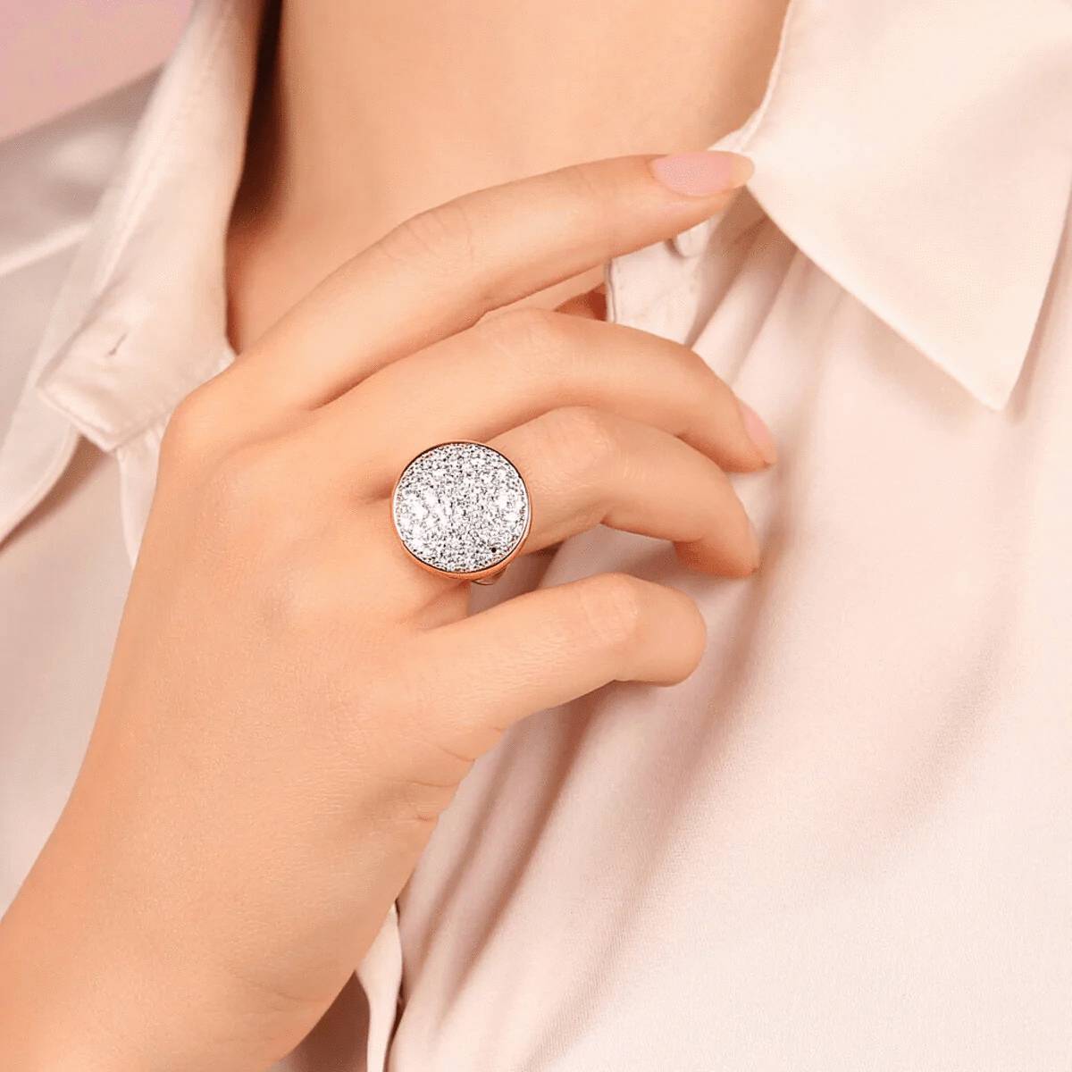 Un anello chevalier pavé per principesse contemporanee, dal look urbano e deciso. Il gioiello in Golden Rose, lega Bronzallure placcata oro rosa 18 carati, è proposto in cubic zirconia bianchi o spinello nero. Abbina questo anello alle collane e ai bracciali pavé della collezione Altissima per il massimo del look.