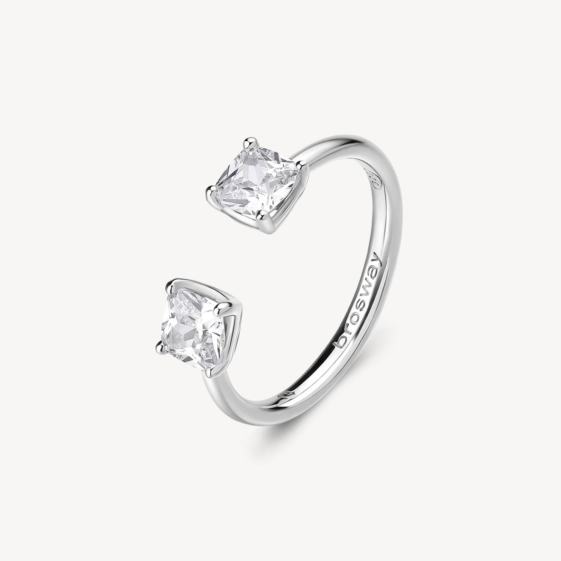 Anello in argento rodiato 925‰ con cushion cubic zirconia.