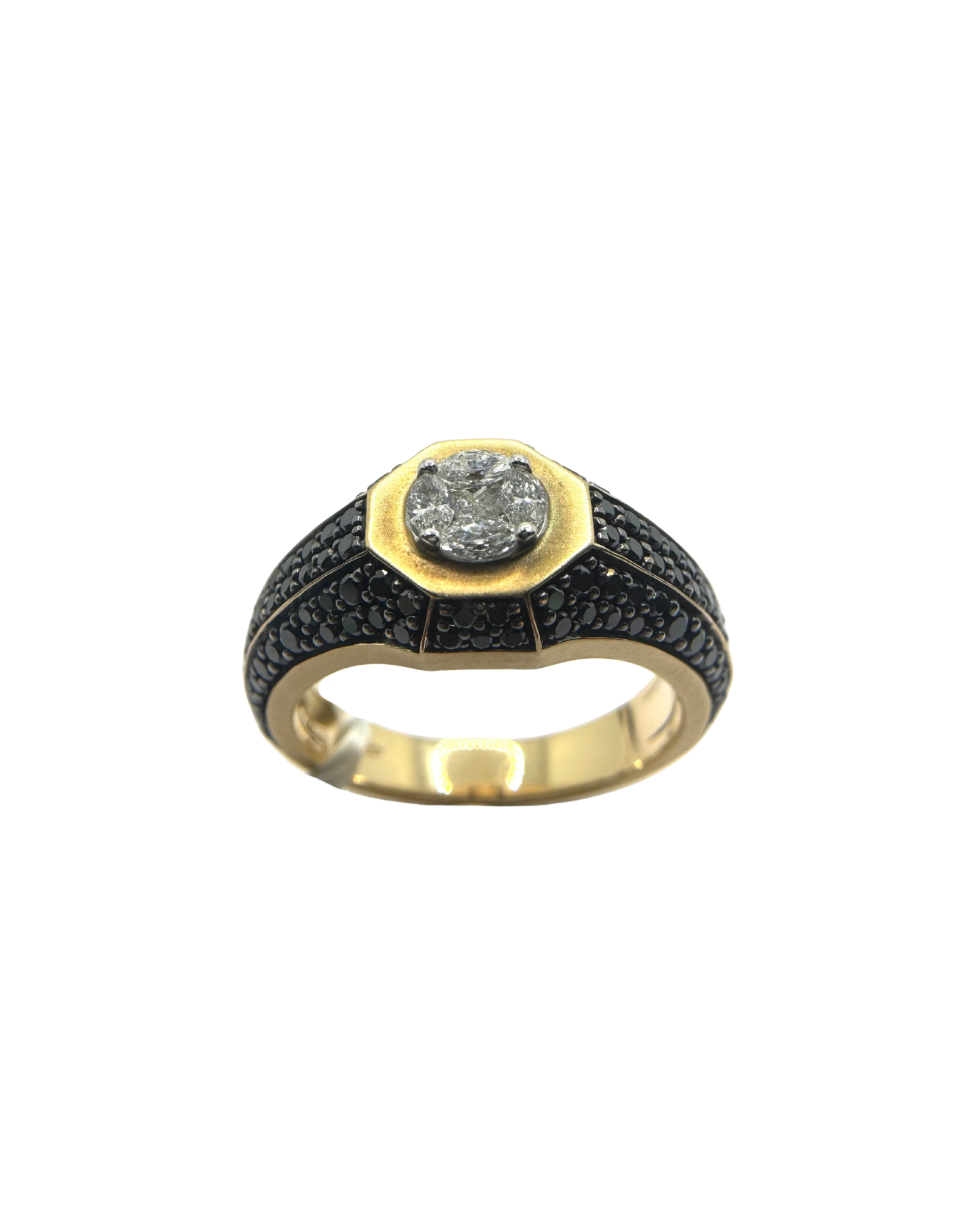 Anello Chevalier in Oro Ros con Diamanti Bianchi e Pavè di Diamanti Neri