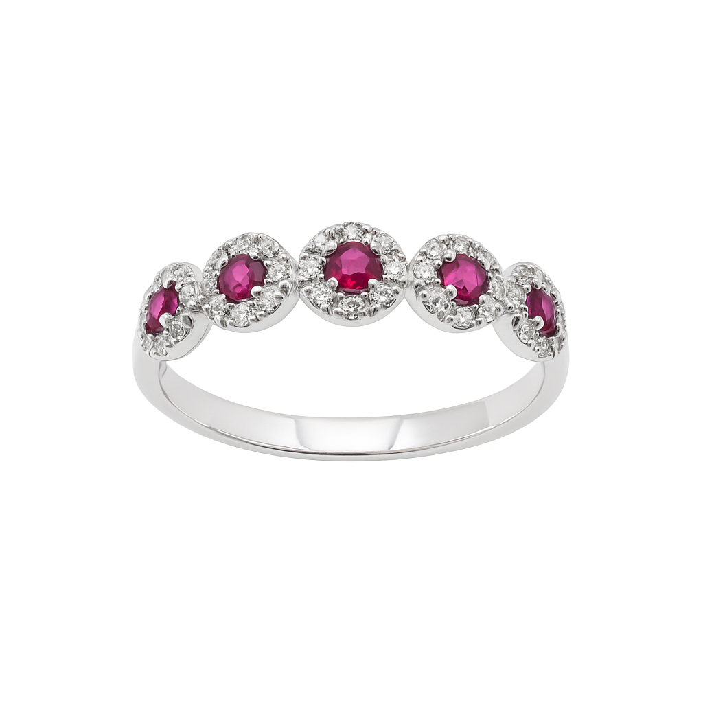 Anello Giorgio Visconti in Oro Bianco con Rubini e Diamanti