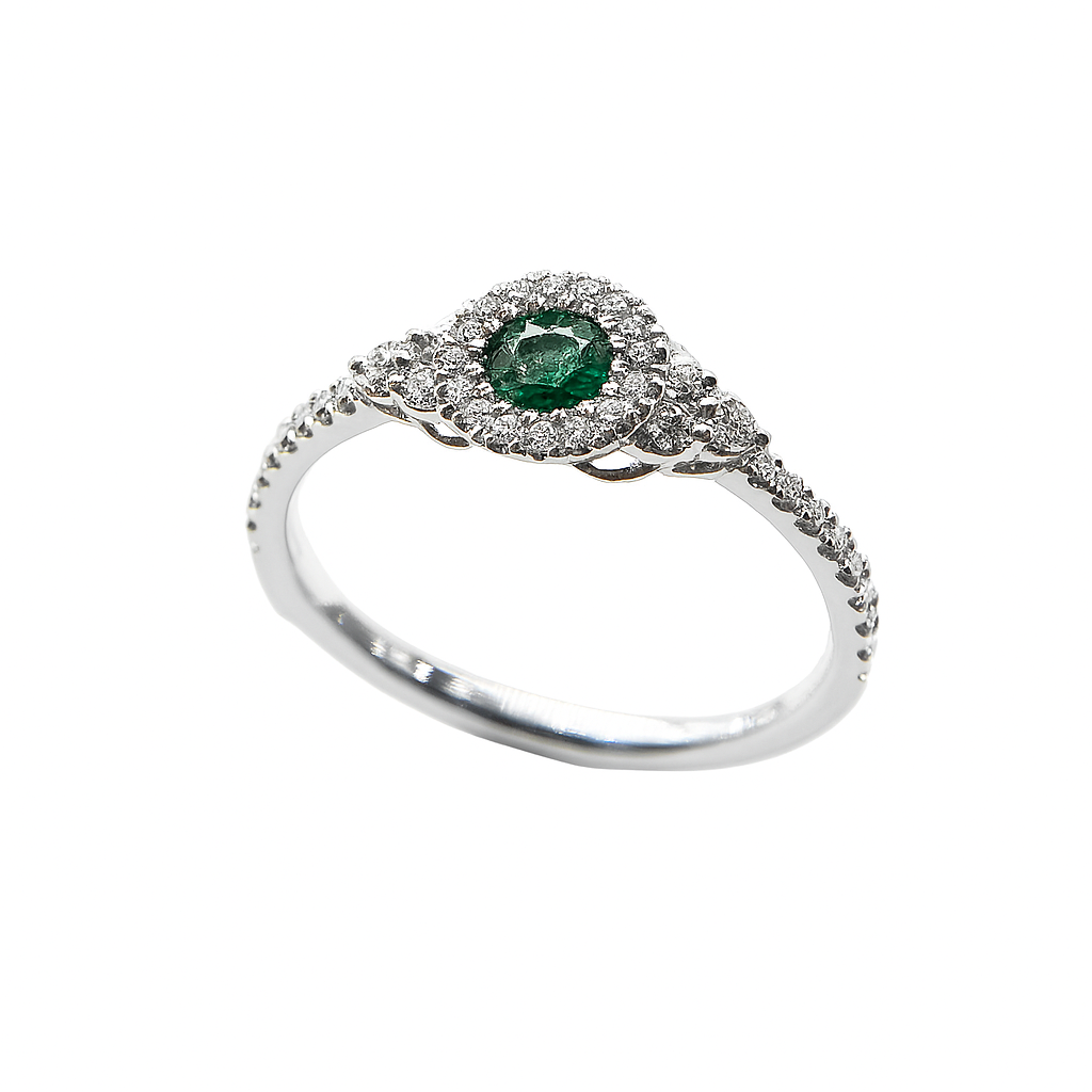 Anello Giorgio Visconti in Oro Bianco con Smeraldo e Diamanti