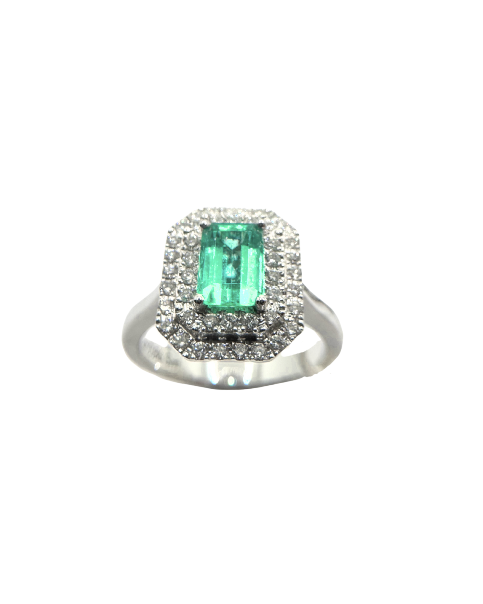 Anello Iannelli Handmade in Oro Bianco con Smeraldo Taglio Ottagonale e Diamanti