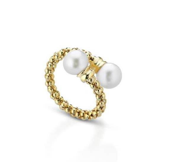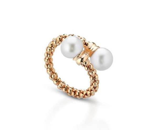 Anello Lelune in argento 925 con galvanica in oro rosa o gialla e doppia perla . Diametro perla 7.5/8 mm.