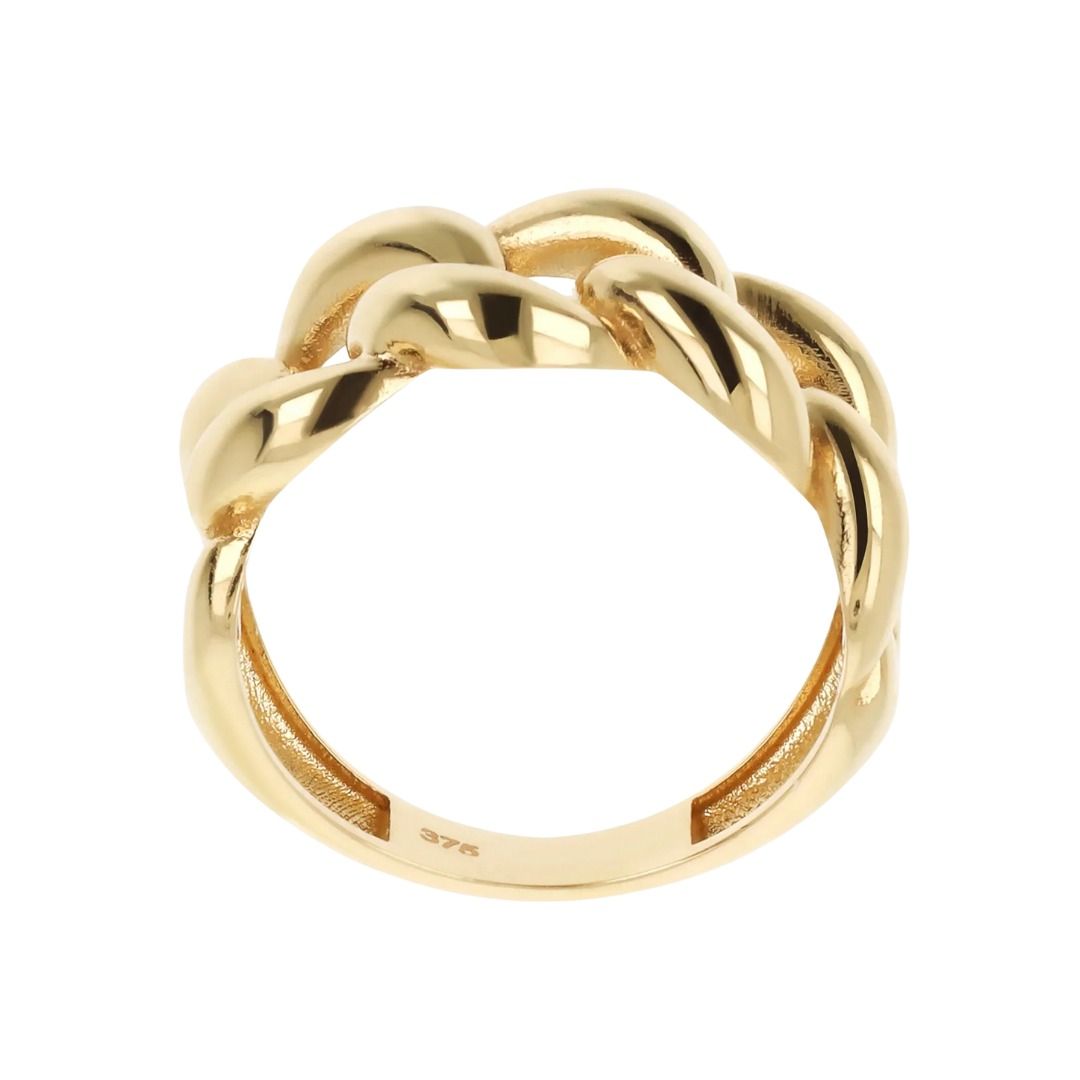 Anello a fascia in Oro 375/1000 con maglia grumetta lucida. Oro 375/1000. Made in Italy. Ipoallergenico & Nickel Free.