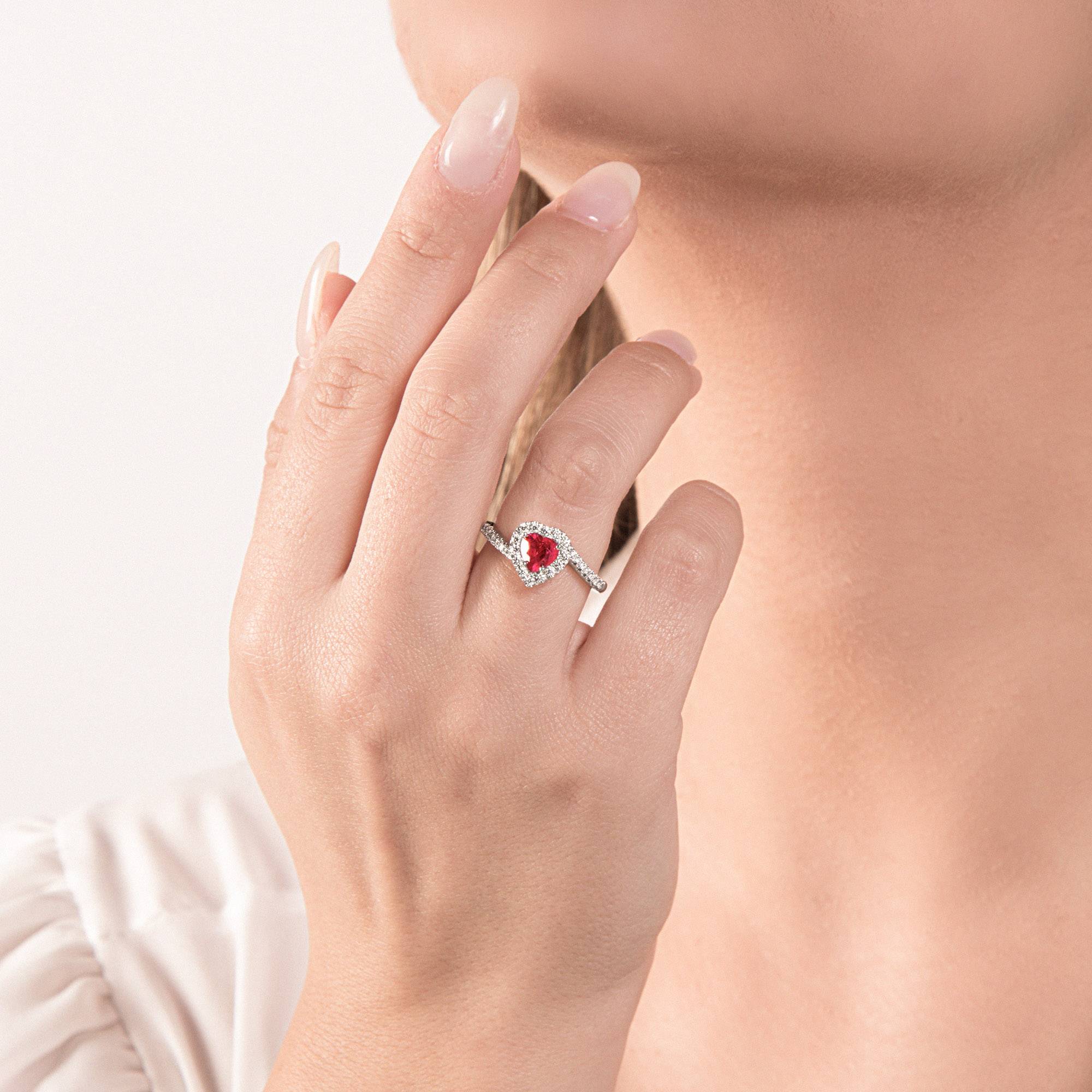 Anello Mirco Visconti con Rubino Taglio Cuore ct.0,60 e Diamanti ct. 0,29
