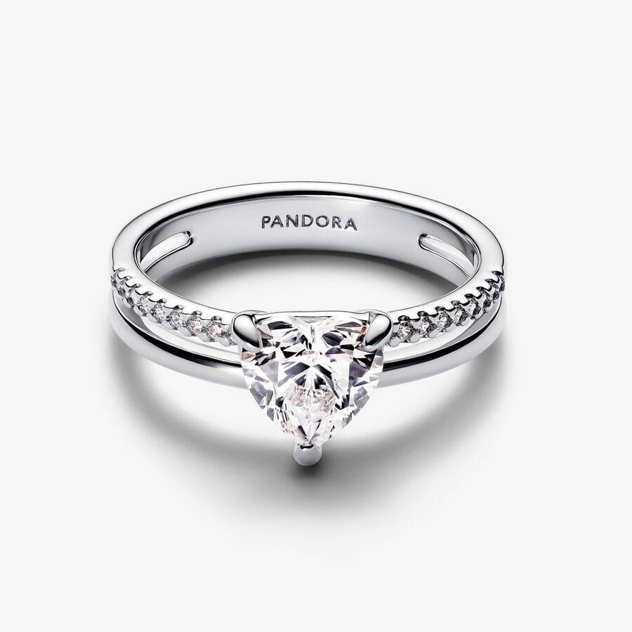 Celebra l'amore. Questo anello in Argento Sterling 925 presenta un design unico con due fasce collegate, una lucida e l'altra decorata da pavé. Al centro si trova una luminosa pietra di zirconia cubica a forma di cuore che dona un tocco romantico.
