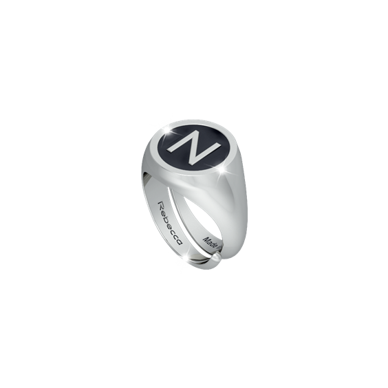 Anello Chevalier Rebecca iniziale N in acciaio e smalto nero