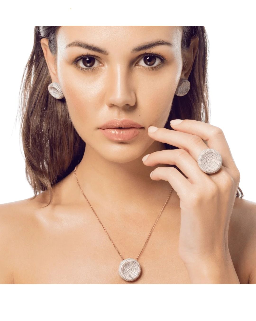 Anello Sogni in argento 925 con galvanica in oro rosa18 kt, pietre micro pavé di opale azzurro.