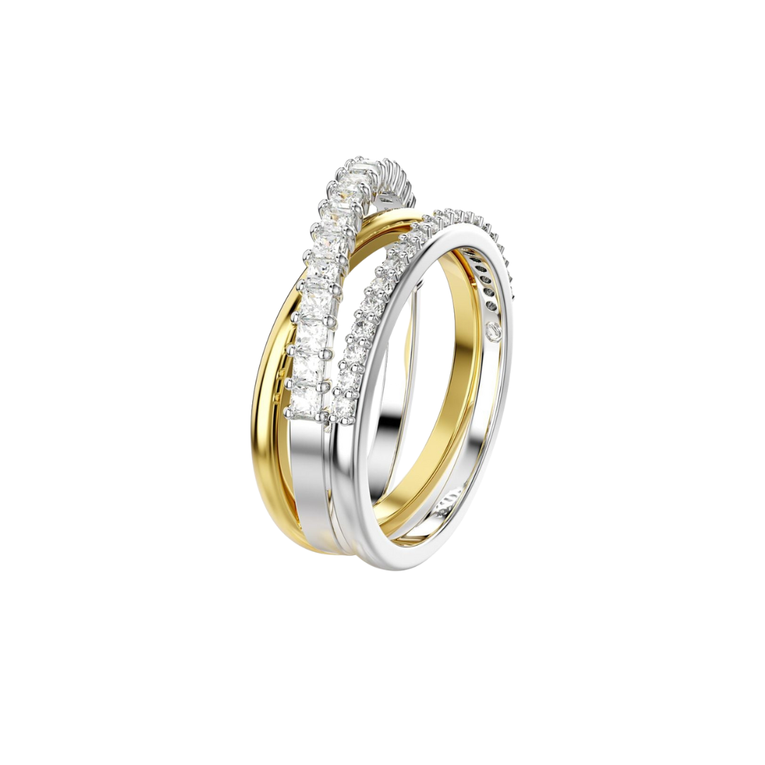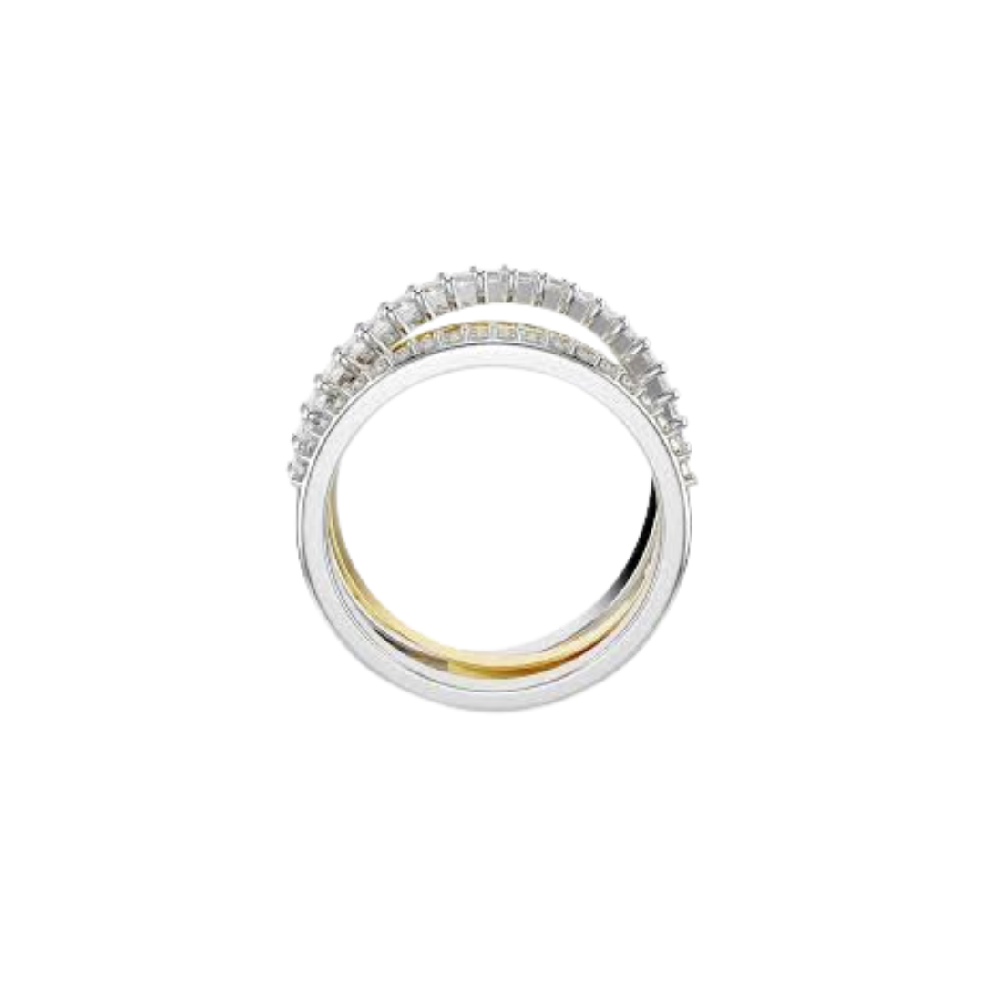 Anello Swarovski a 3 Fasce in Rodio Bianco e Giallo con Pietre Luminose Linea Hyperbola