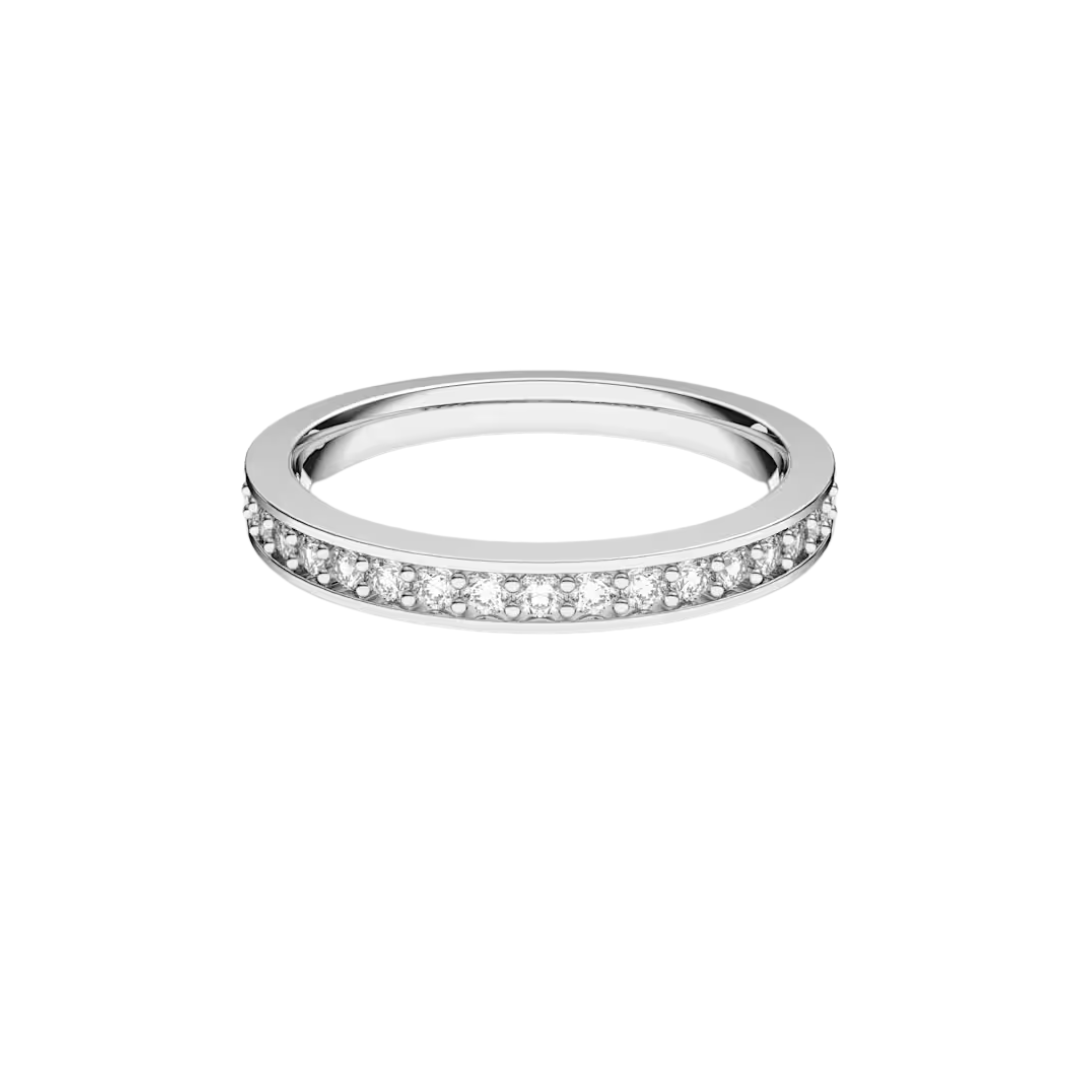Un accessorio essenziale per qualsiasi portagioielli. Con una silhouette sottile e un semicerchio di pietre tagliate con precisione, questo delicato anello placcato in rodio è raffinato e facile da indossare. Abbinalo ad altri accessori nei toni dell'argento o combina vari tipi di metalli per un look più particolare.