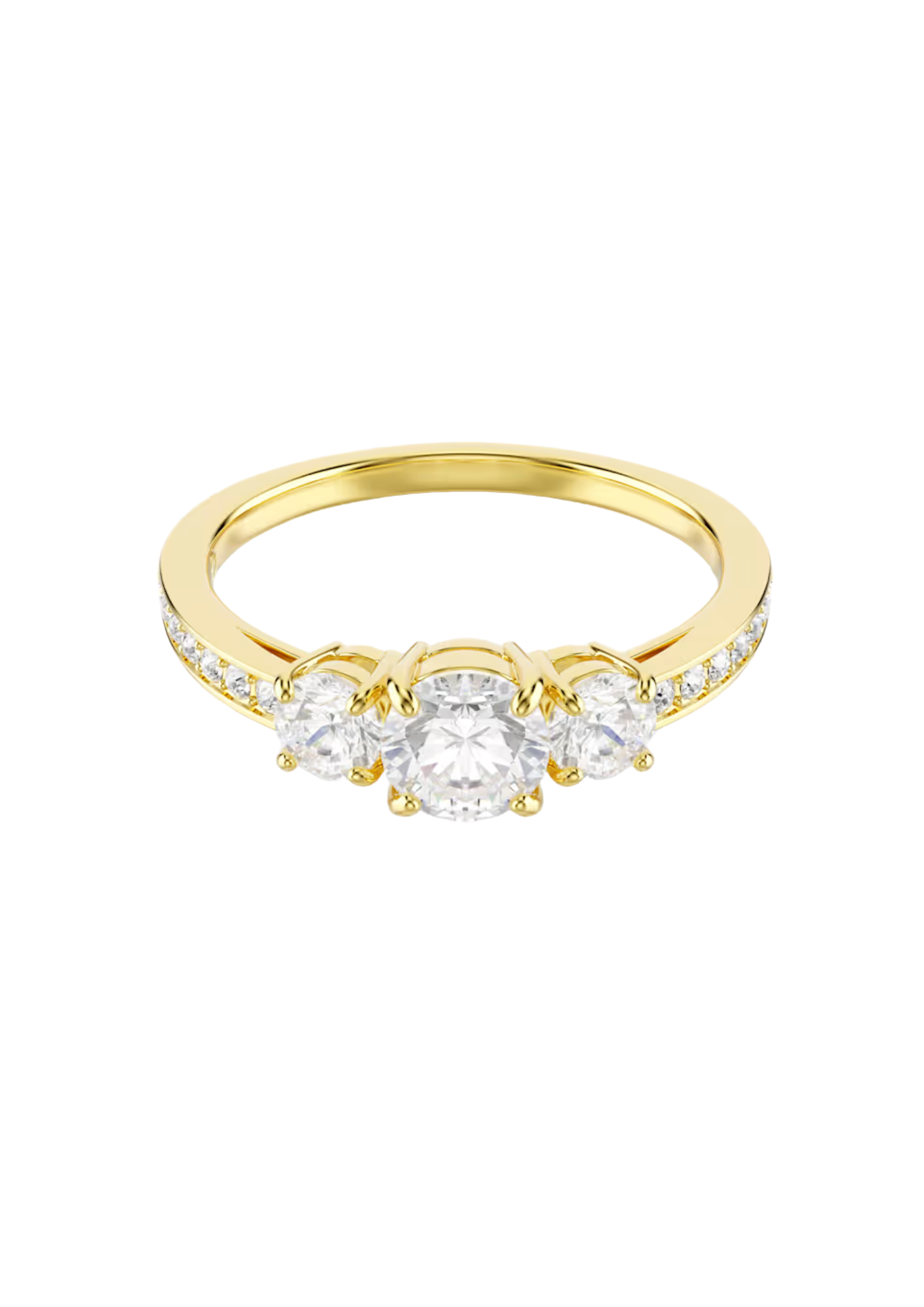 Pensata per ogni occasione, la famiglia Stilla evoca pura eleganza. Questo classico anello porta la radiosità ad un livello superiore grazie ai cristalli Cry lungo la fascia e ad un trio di Swarovski Zirconia dal taglio di precisione su una brillante finitura in tonalità oro. Uno splendido gioiello da indossare tutti i giorni, facile da abbinare ad altre creazioni della stessa famiglia.