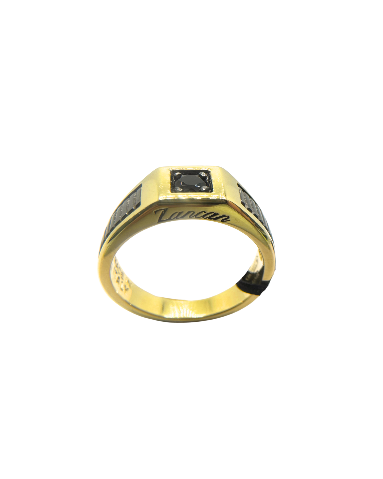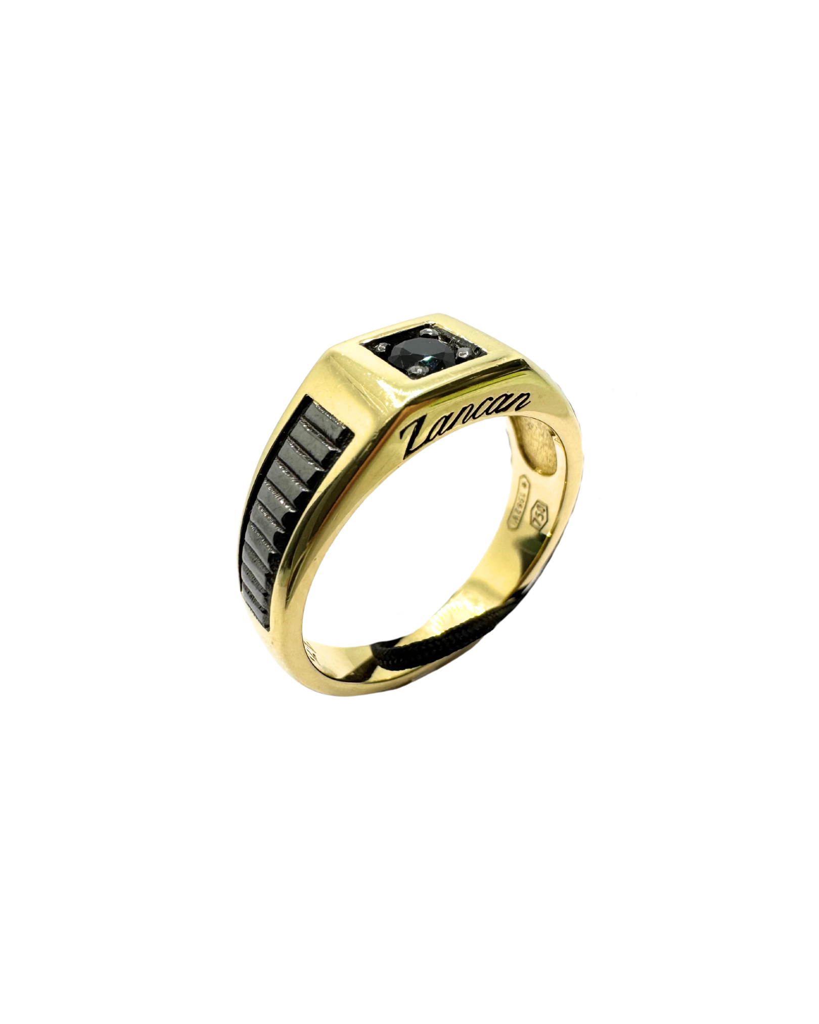 Anello Zancan da Uomo in Oro Giallo e Brunito con Spinello Nero Centrale