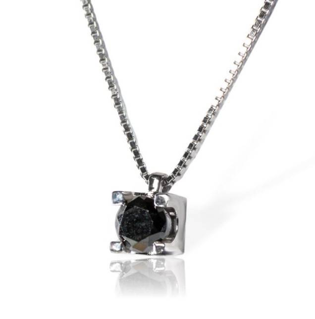 Collana punto luce in oro bianco 18Kt con diamante nero taglio brillante 0.21 ct