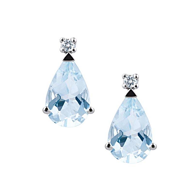 Orecchini con Acquamarina a goccia e diamante della collezione Pret-a-porter di BiBiGì. Realizzati in oro bianco 18 Kt, sono impreziositi da acquamarina taglio goccia diamanti taglio brillante.
