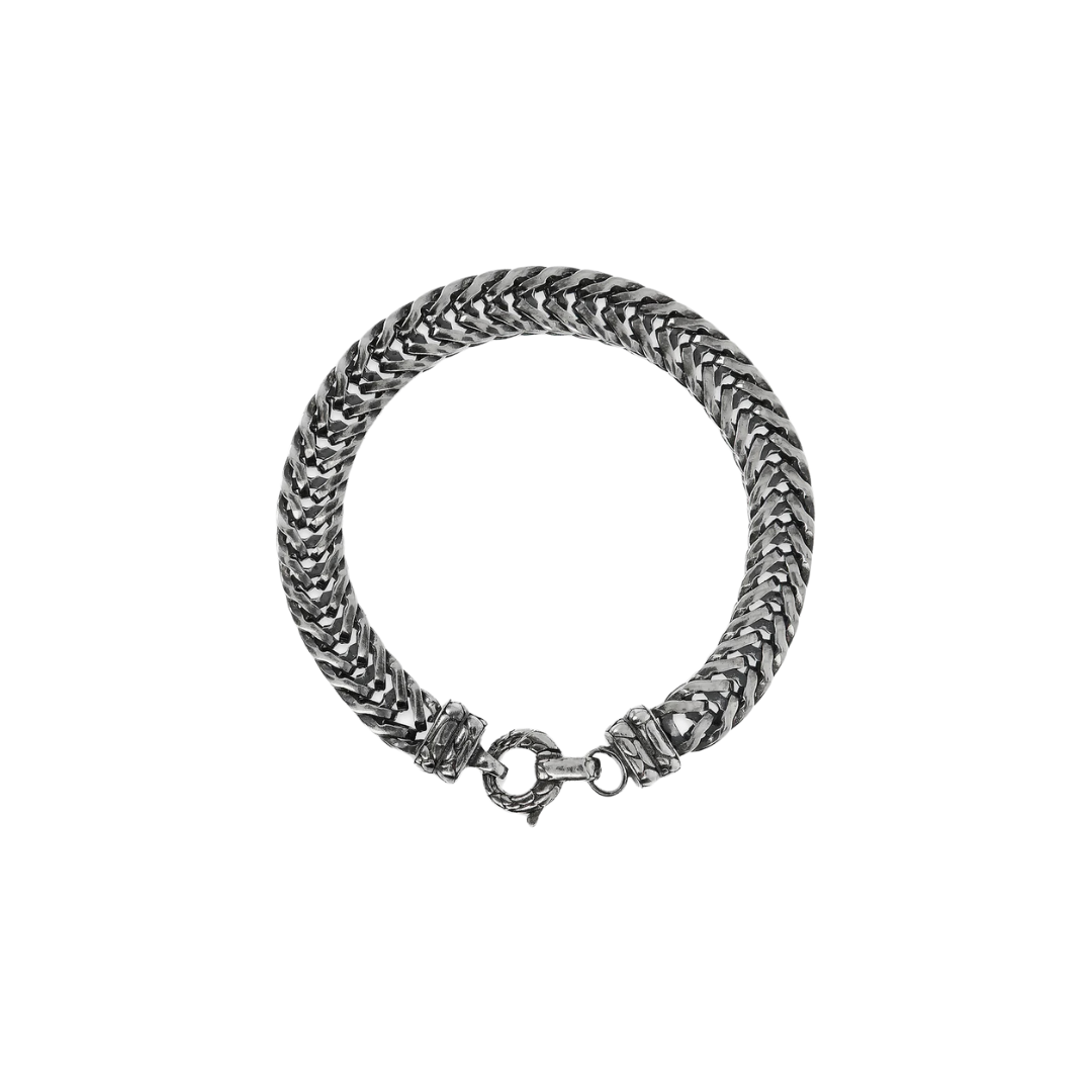 Bracciale Albert M. in Argento 925, placcato Rodio, con maxi catena spiga. Chiusura a moschettone. Lunghezza 21 cm.