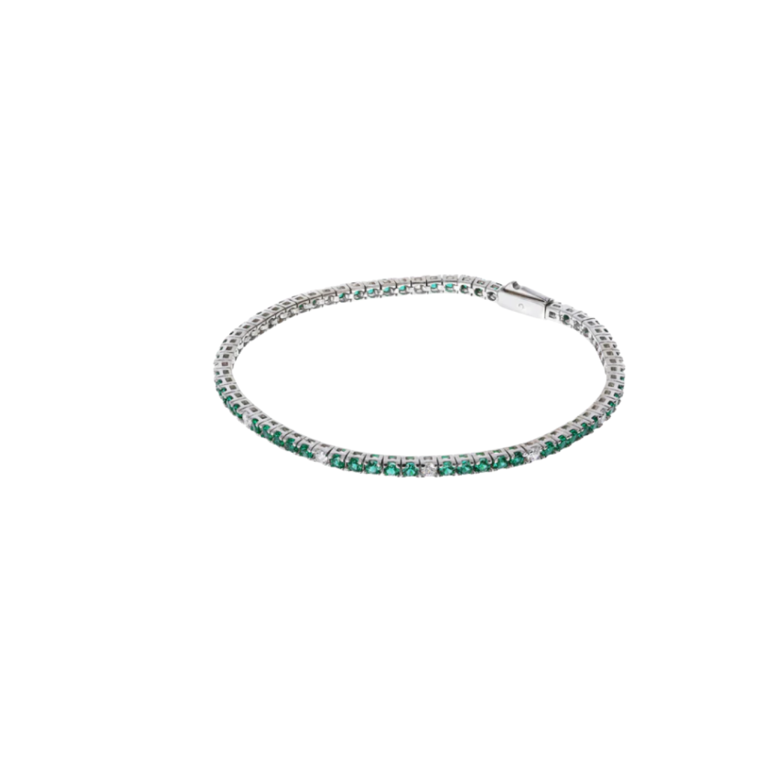 Bracciale tennis bicolore uomo Albert M. realizzato su base di argento 925 impreziosito da cubic zirconia dalla forma tonda. La particolarità di questo bracciale è che anche la chiusura, a cassetta, è ricoperta da cubic zirconia, qualità luminosa.