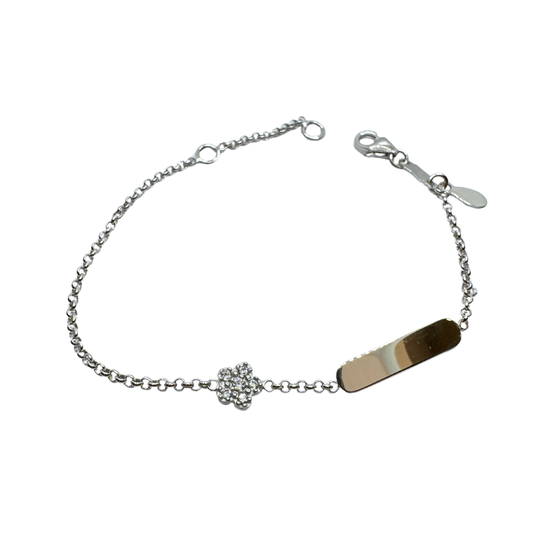 Bracciale Bimba in Oro Bianco 18 KT con Fiore con Zirconi