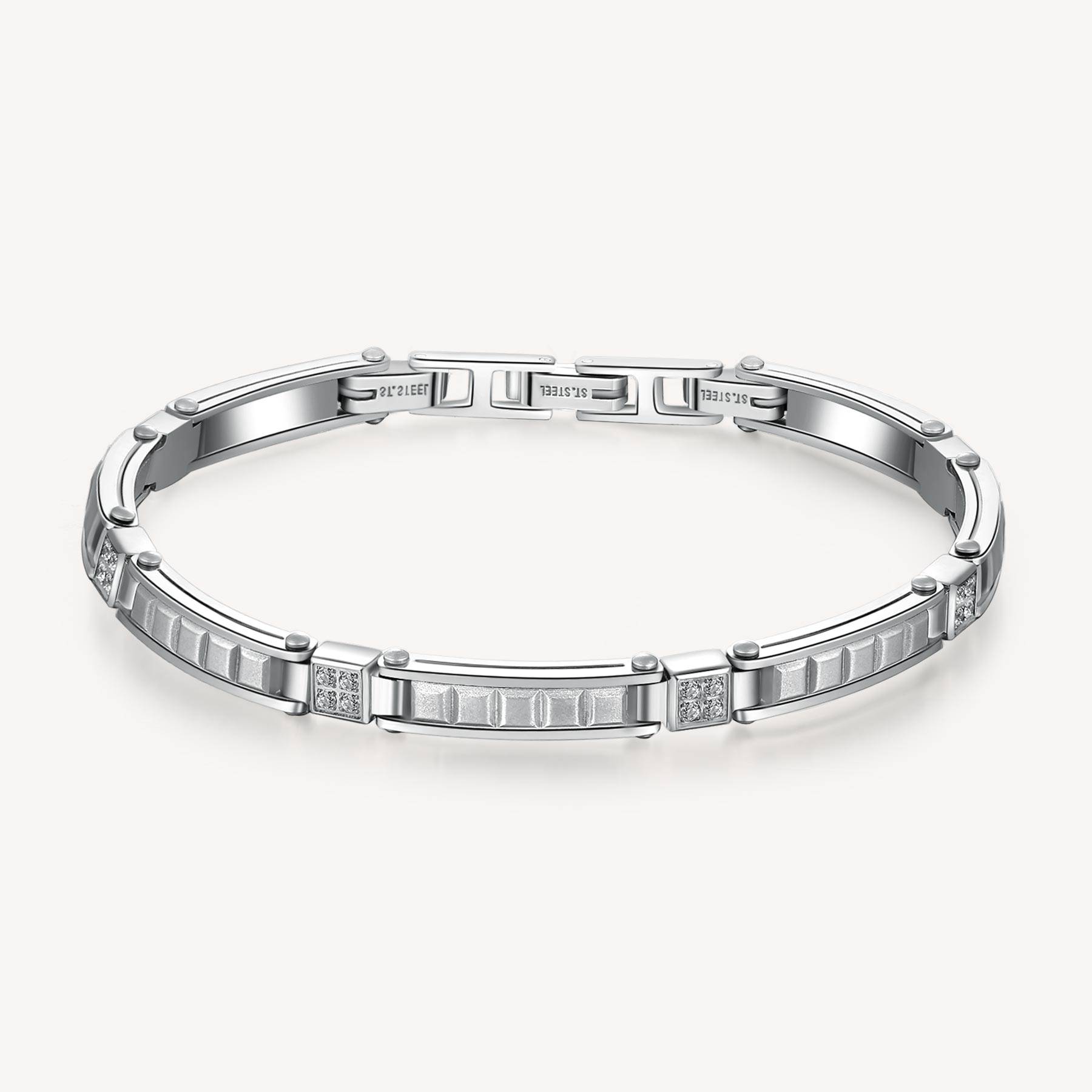 Bracciale semirigido in acciaio 316L lucido e satinato con cubic zirconia.