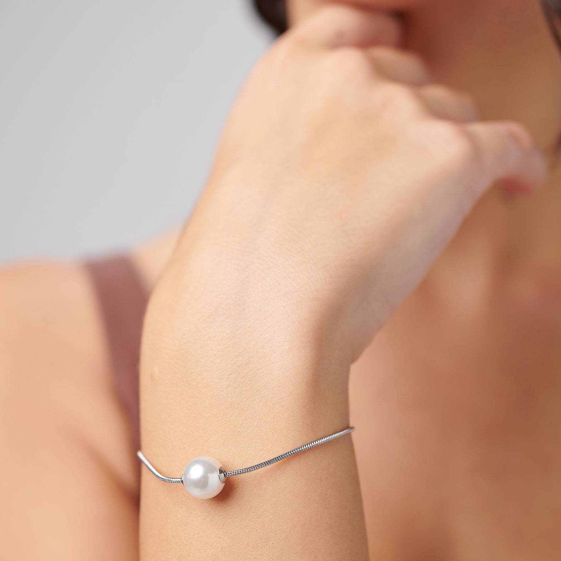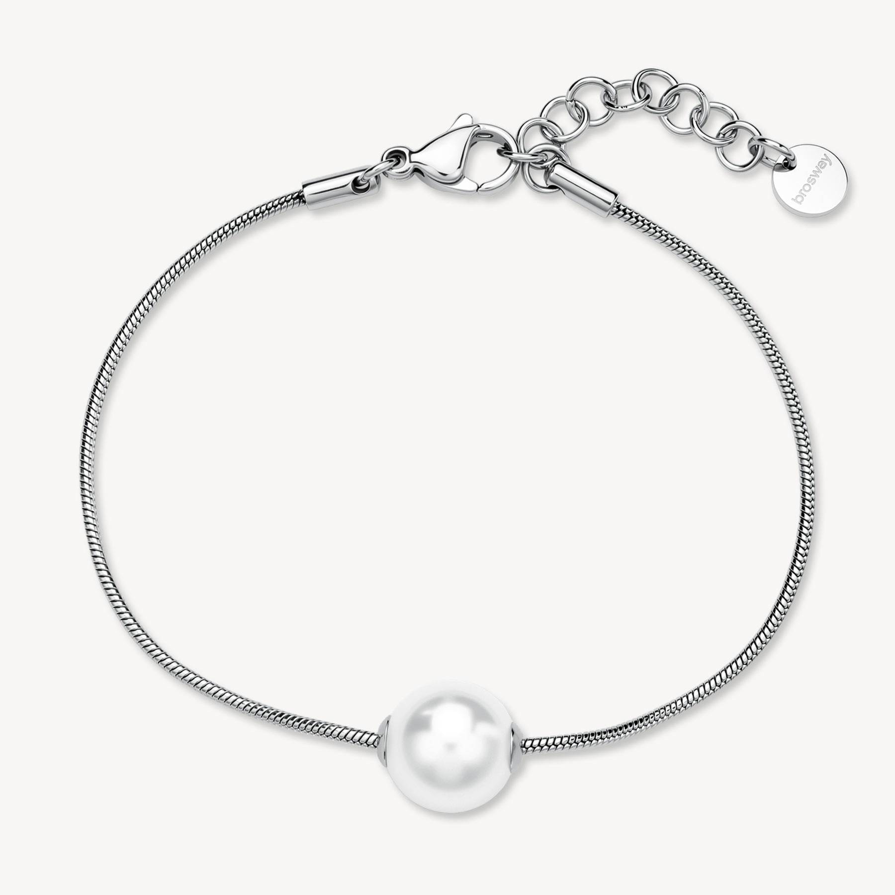Bracciale in acciaio 316L con perla di conchiglia centrale.