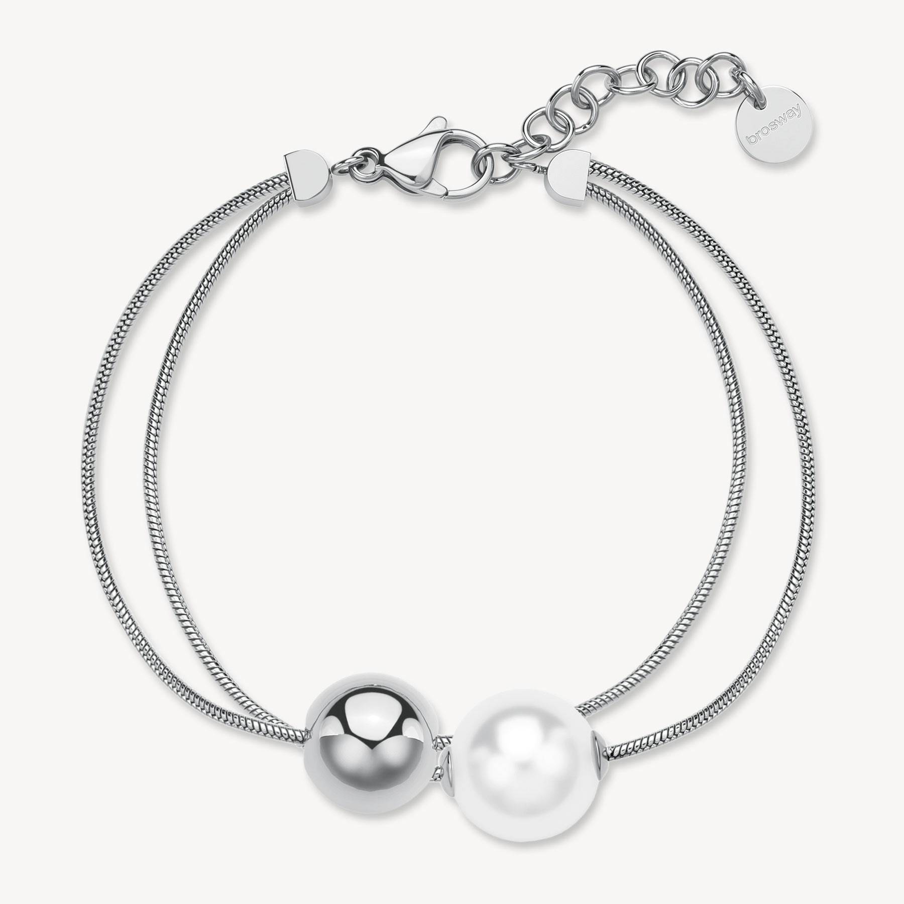 Bracciale multifilo in acciaio 316L con centrale a sfera e perla di conchiglia.