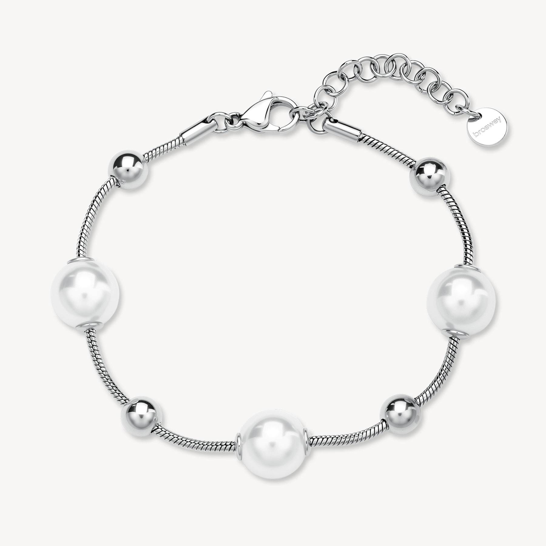 Bracciale in acciaio 316L con sfere e perle di conchiglia.