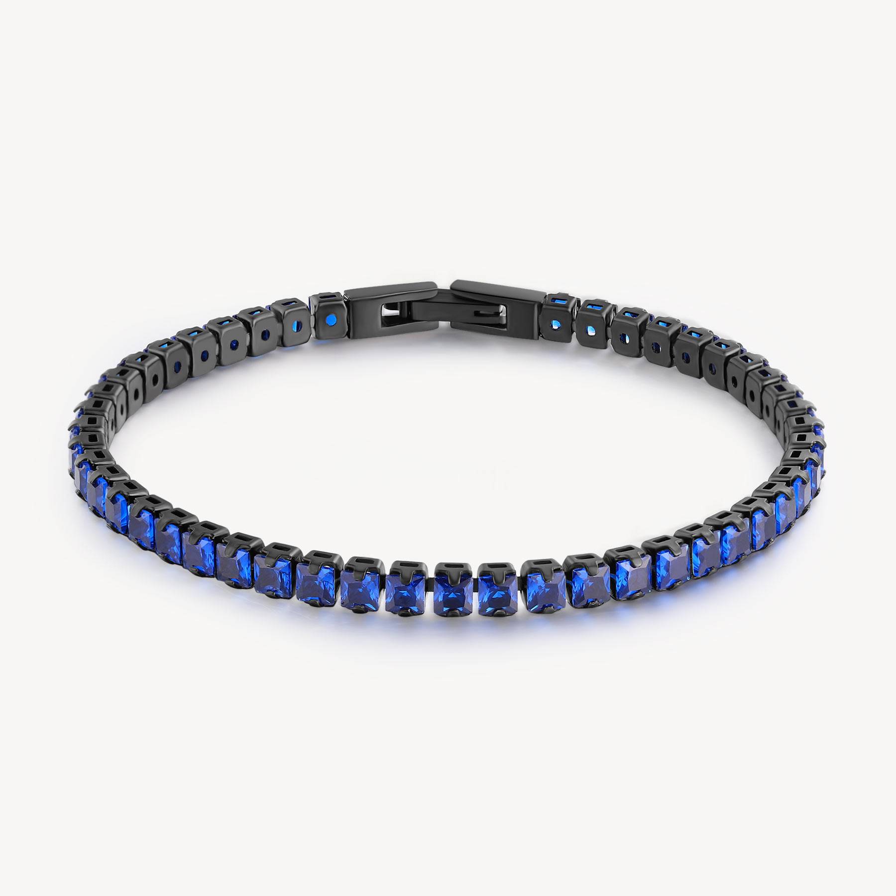 Bracciale tennis in acciaio 316L e finitura pvd colore nero con cubic zirconia colore spinel blue.