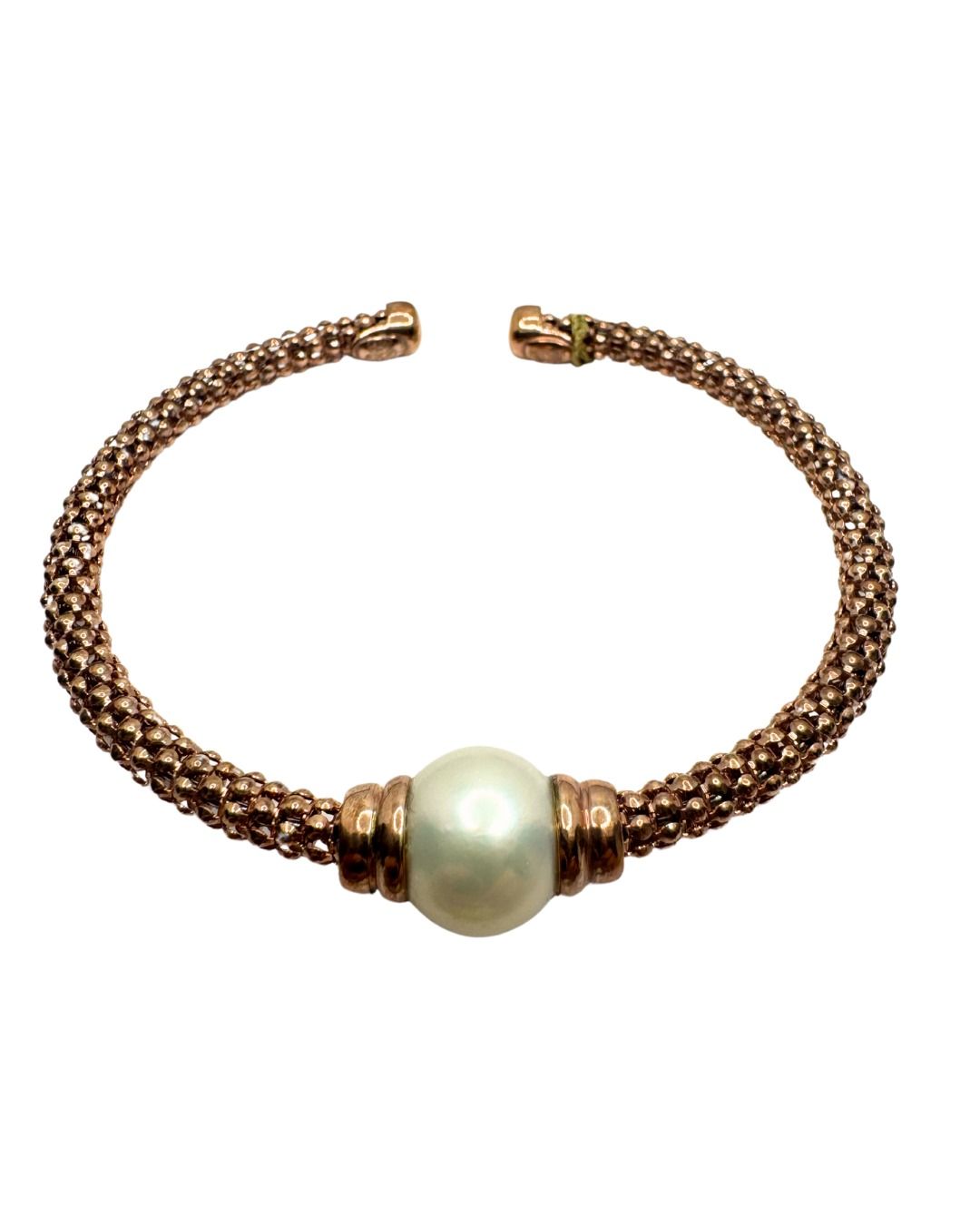 Bracciale rigido aperto lelune in argento 925 rosè con perla centrale da 9.5/10 mm.
