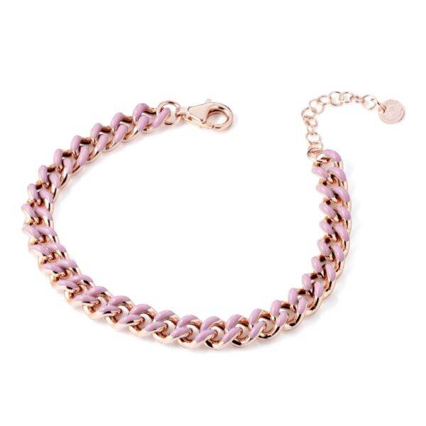 Bracciale in Argento Maxi Groumette con Smalto. Realizzato in argento 925 °% galvanica oro rosa 18 kt, questo bracciale è composto da una catena a maglia groumette decorata da dettagli smaltati e colorati. ideato per una donna decisa, moderna, che non ha paura di osare.