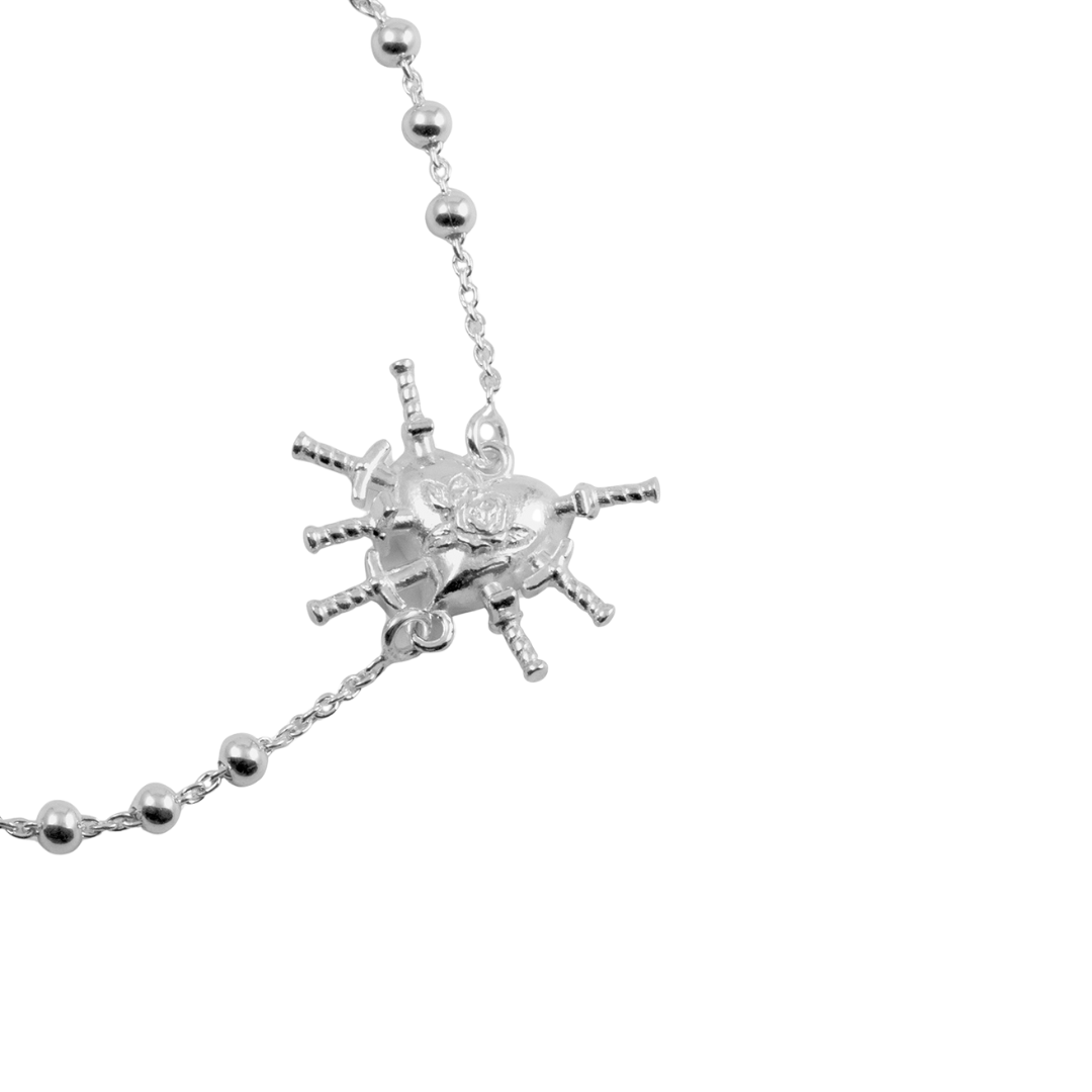 Il bracciale a rosario, con i suoi grani argentati, mette in connessione una croce gotica e un cuore trafitto da sette spade, segni delle sofferenze che innalzano lo spirito. Il Bracciale Rosario Cuore 7 Spade fa parte della Collezione Traditional ed è realizzato in Argento 925. Come tutti i gioielli Nove25 anche questo Bracciale viene progettato e lavorato in Italia mediante l'utilizzo delle più moderne tecnologie e rifinito a mano per garantirne il massimo dettaglio e la più elevata qualita'. Questo gioiello viene proposto con una finitura Argento Lucido ed è disponibile in taglia unica.