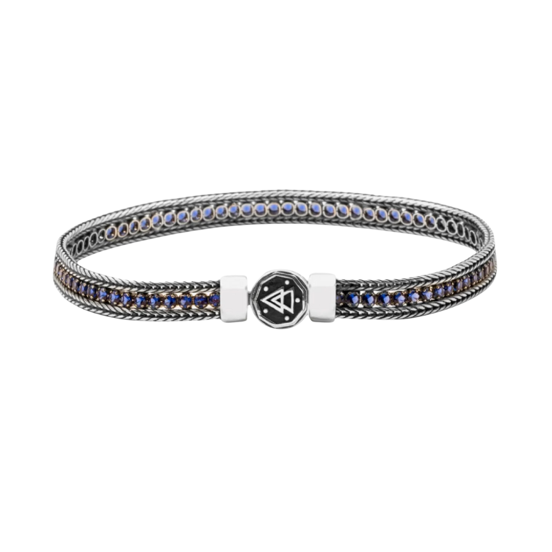 Due contorni in corda argentata a coda di volpe rivoluzionano il classico bracciale tennis in zirconi blu. Nel Tennis Foxtail la tradizione si veste di novità, brandizzata con la chiusura a calamita Nove25. Il Bracciale Tennis Blu Foxtail fa parte della Collezione Timeless ed è realizzato in Argento 925. Come tutti i gioielli Nove25 anche questo Bracciale viene progettato e lavorato in Italia mediante l'utilizzo delle più moderne tecnologie e rifinito a mano per garantirne il massimo dettaglio e la più elevata qualita'. Questo gioiello viene proposto con una finitura Argento Brunito Lucido ed è disponibile nelle seguenti taglie: 18-20 cm.