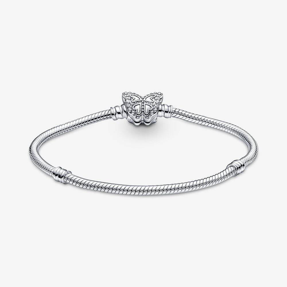 Racconta la tua storia di primavera e lasciati ispirare dalla stagione delle grandi trasformazioni con il nostro bracciale Pandora Moments con maglia snake e chiusura a farfalla. I dettagli a cuore in rilievo e intagliati e le pietre di zirconia cubica incolori rotonde con taglio brillante incastonate a granette donano profondità e tridimensionalità alle ali della farfalla. Puoi inserire fino a 18 charm sul bracciale per portare con te le sensazioni della primavera ovunque tu vada. Abbinalo ad altri gioielli in argento sterling 925, come gli orecchini a cerchio Farfalla blu.