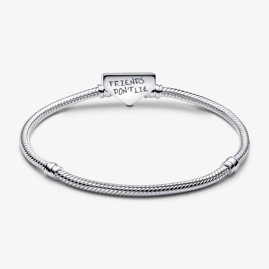 Celebra la lealtà e l'amicizia con questo Bracciale con Logo ispirato a Stranger Things. Realizzato in Argento Sterling 925, questo bracciale in maglia snake è decorato da una chiusura con il logo Stranger Things dipinto in smalto rosso su un lato, e l'incisione FRIENDS DON'T LIE (GLI AMICI NON MENTONO) sull'altro. Personalizza questo gioiello ricco di significato con un massimo di 16-18 charm per portare con te i tuoi simboli e personaggi preferiti.