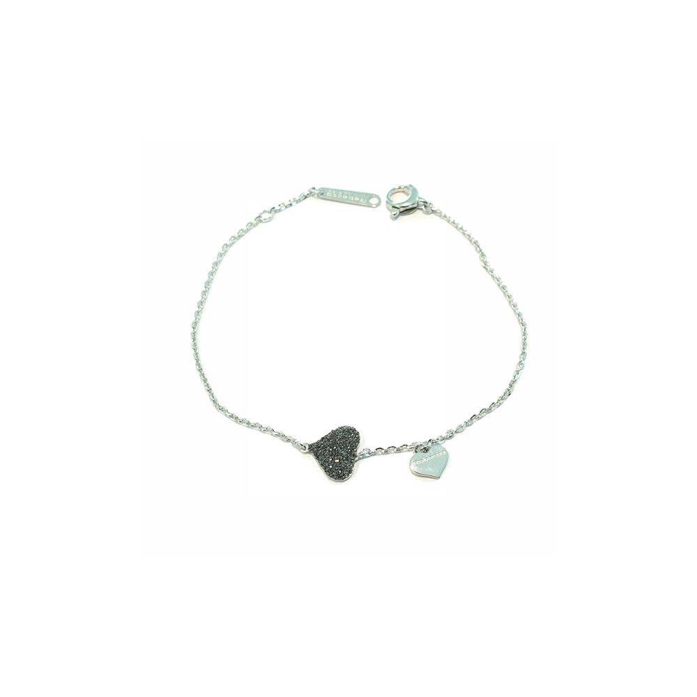 Bracciale Rebecca in argento con cuore rivestito di polvere di diamanti Jolie. Lunghezza regolabile dai 16 ai 18 cm.